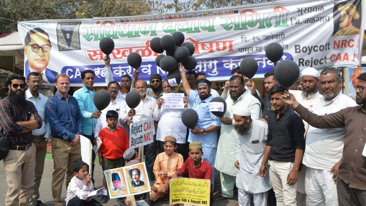 केंद्र सरकारने सी.ए.ए/एन.आर.सी लागू करू नये यासाठी संविधान बचाव समिती तर्फे दिनांक 10 फेब्रुवारी रोजी दुपारी 1 वाजेच्या सुमारास हवेत काळे फुगे सोडून केंद्र सरकारचा निषेध केला .यावेळी समितीचे पदाधिकारी व साखळी उपोषणकर्ते उपस्थित होते.