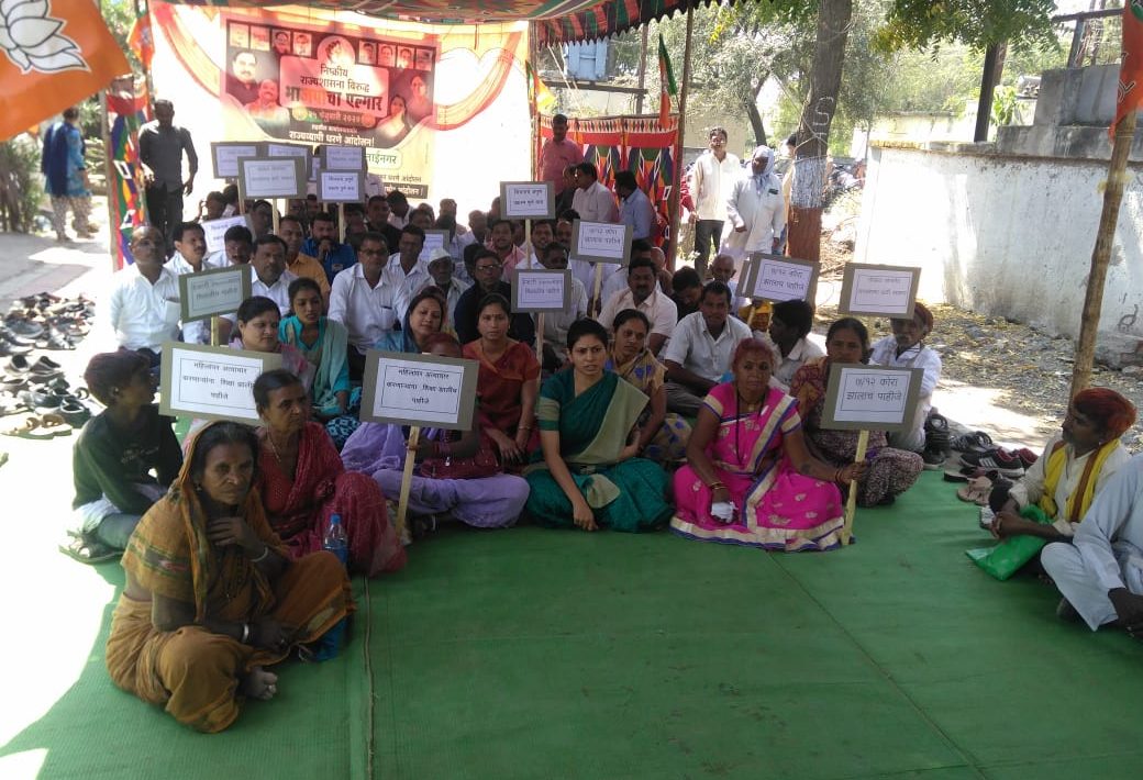 खिचडी सरकारचा धिक्कार असो,ठाकरे सरकरचा धिक्कार असो,सातबारा कोरा करा,महिलांनावर अत्याचार करणाऱ्यांना शिक्षा झालीच पाहिजे. शेतकऱ्यांना कर्जमाफी झालीच पाहिजे.हेक्ट्ररी 25 हजार मदत मिळालीच पाहिजे.सिंचनाचे अपूर्ण प्रकल्प पूर्ण करा.कोणत्याही शेतकऱ्यांचा सातबारा कोरा करण्यासाठी एकाच वेळी यादी काढण्यात यायला हवी.राज्य सरकारचे लक्ष वेधण्यासाठी माजी मंत्री एकनाथ खडसे , खा रक्षा खडसे यांच्या नेतृत्वाखाली राज्यव्यापी धरणे आंदोलन मंगळवार २५ रोजी सुरू केले आहे .