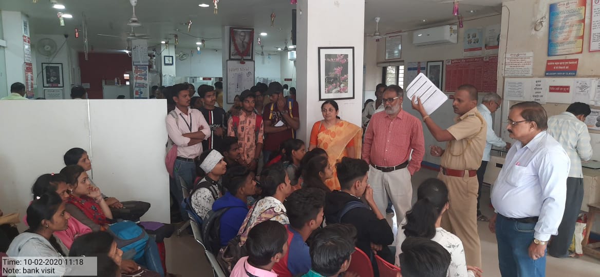 येथील दादासाहेब देविदास नामदेव भोळे महाविद्यालयातील अर्थशास्त्र विभागातर्फे द्वितीय वर्ष कला, तृतीय वर्ष कला,प्रथम वर्ष वाणिज्य, द्वितीय वर्ष वाणिज्यच्या विद्यार्थ्यांना बँकिंग विषयाच्या प्रात्यक्षिक करिता यूनियन बैंक ऑफ इंडिया शाखा, भुसावल येथे भेट दिली. त्या शाखेचे मॅनेजर सय्यद रसूल यांनी विद्यार्थ्यांना बँकेच्या विविध सेवेंबद्दल माहिती दिली. तसेच बँकेत खाते उघडायचे फॉर्म भरतांना काय काळजी घ्यावी, खाते प्रकार, के.वाय.सी,चेकचे प्रकार याबद्दल माहिती देऊन विद्यार्थ्यांच्या शंकाचे समर्पक उत्तर देऊन निरसन केले.या बैंक भेटिप्रसंगी प्रा.डॉ.आर.एम.सरोदे आणि प्रा. डॉ. जयश्री सरोदे बँकेत उपस्थित होते.