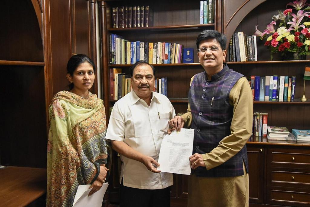 दि. 4 मार्च रोजी रेल्वेमंत्री पियुष गोयल यांची भेट माजी महसूलमंत्री एकनाथराव खडसे व खासदार रक्षाताई खडसे यांनी घेतली.