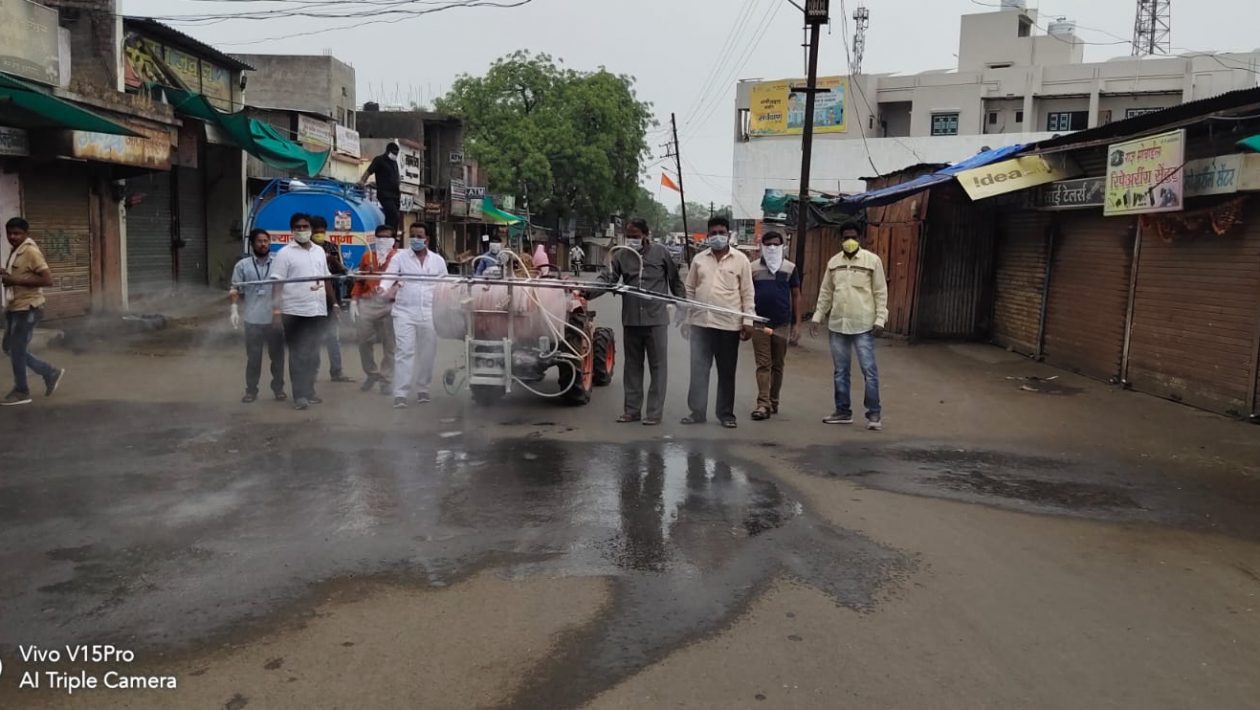 जिल्हाधिकारी यांच्या निर्देशांचे प्रत्येक गावात कीटकनाशक फवारणी करणे आवश्यक असल्याने त्या अनुषंगाने शहरात हातपंपाने फवारणी केली जात होती. परंतु त्यात कर्मचाऱ्यांना जास्त श्रम व काम कमी होत असल्याने दिनांक 27 रोजी नगर परिषदेच्या वतीने नगरअध्यक्ष सुनील काळे , मुख्याधिकारी श्याम गोसावी, आरोग्य अधिकारी गणेश चाटे, यांनी लवकरात लवकर शहरात फवारणी व्हावी यासाठी छोट्या ट्रॅक्टर वर २५० लिटर टाकी ठेवून त्याला स्प्रीकलरची जोडणी करूण त्यात २५o लीटर पाणी व ७ किलो ब्लिचिंग पावडर टाकून त्या मिश्रणाचे सोडियम हायपो क्लोराईड मिश्रण तयार करूण ते संपूर्ण गावातील मुख्य रस्त्यांवर, पेट्रोल पंपाच्या आजुबाजूला, समाज गृहांच्या आजुबाजूला, भाजी मंडी, मार्केट अशा सार्वजनिक ठिकाणी जंतुनाशक फवारणी केली जाते आहे त्यामुळे शहरात होणारे रोगराईचे प्रमाण कमी होण्यास मदत होणार आहे.