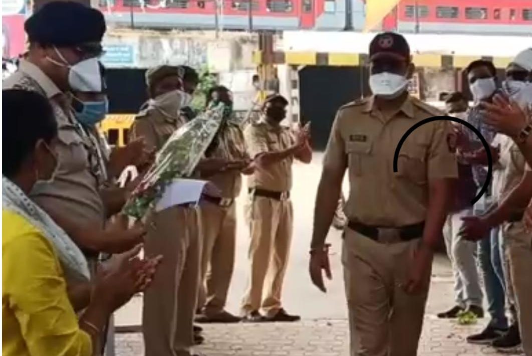 भुसावळ येथील पोलीसO कर्मचारी मालेगाव येथे बंदोबस्त कामी गेले असता दुर्दैवाने कोरोनाग्रस्त झाले , उपचार व आत्मविश्वास यामुळे कोरोनावर मात करून सुखरूप परतले , पोलीस निरीक्षक दिलीप भागवत यांच्या सह सर्व कर्मचाऱ्यांनी टाळ्यांच्या गजरात व पुष्पवर्षाव करून स्वागत करून त्यांचे मनोबल वाढविले.