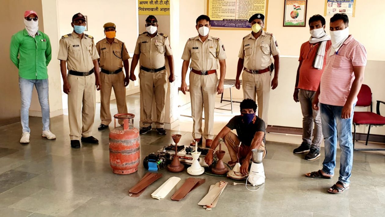 तालुका पोलीस स्टेशन हद्दीत 22 जून रोजी साकेगांव येथे बाळु वासुदेव आमोदेकर रा. साकेगांव यांचे राहते घराचा कडी कोंडा कोणीतरी अज्ञात चोरट्याने तोंडुन घरात प्रवेश करून घरातील 4 पंखे, गँस हंडी,शेगडी मिक्सर असा एकुण 52 हजार 600 ऱूपये किंमतीचा माल घरफोडी करून नेल्या बाबत तालुका पोलिस स्टेशनला गुरन 189/2020 454,457, 380 प्रमाणे गुन्हा दाखल करण्यात आला . या गुन्ह्याचे तपासात अज्ञात चोरट्याची गुप्त बातमीदारामार्फत माहीती काढुन संशयित आरोपी गुरूलाल भगवानसिंग बिलाला वय 48 रा. बोगदरा ता.जि. खरगौण मध्यप्रदेश याची सखोल चौकशी केली असता त्याने घरफोडीची कबुली दिल्याने त्यास घरफोडी प्रकरणी अटक करण्यात आली .