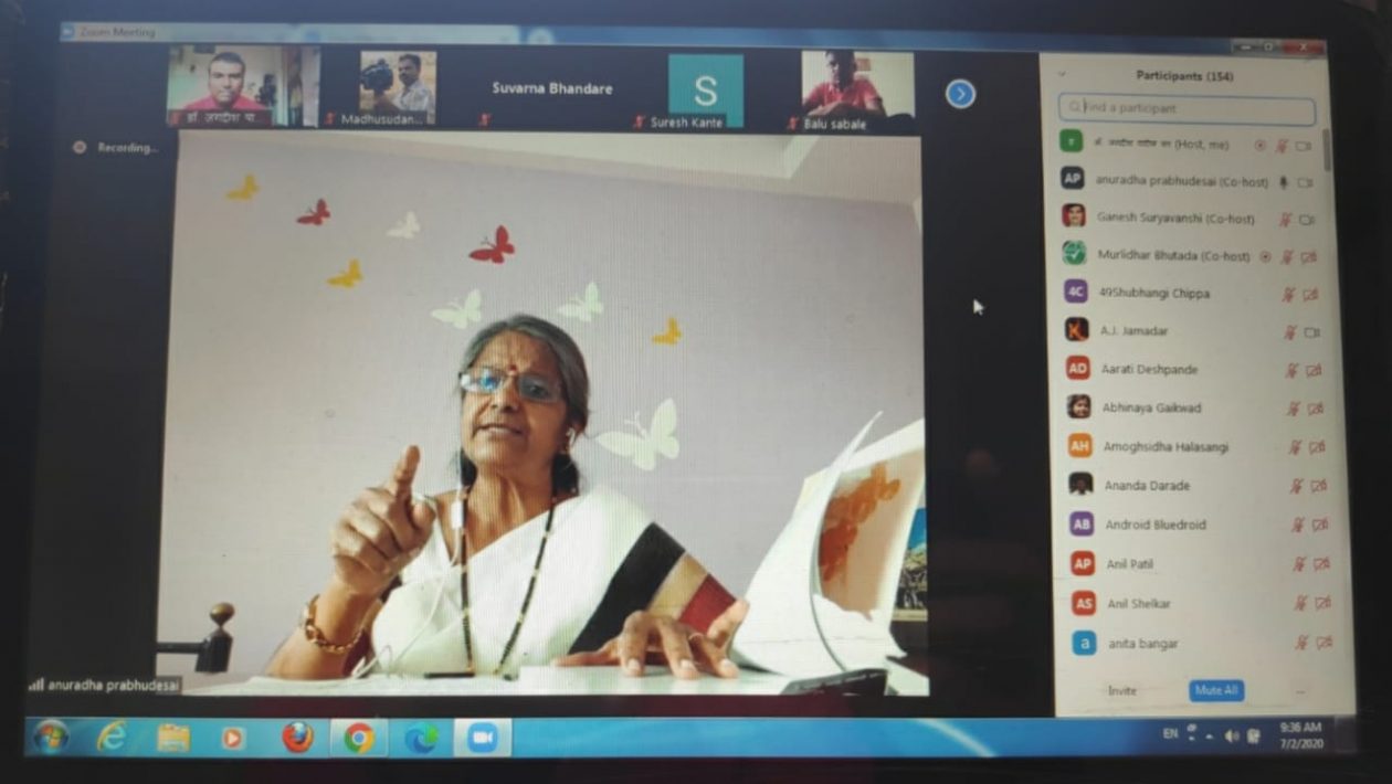 बारावी युवकभारती मराठी भाषा अभ्यास मंडळ सदस्य डॉ. जगदीश पाटील यांच्या संकल्पनेतून आयोजित करण्यात आलेल्या बारावी युवकभारती मराठी पाठ्यपुस्तकातील लेखक-कवी यांच्याशी ऑनलाईन संवाद या उपक्रमांतर्गत लेखिका अनुराधा प्रभुदेसाई बोलत होत्या. प्रारंभी डॉ. जगदीश पाटील यांनी चारदिवशीय उपक्रम आयोजनाचा हेतू कथन केला. प्रा. गणेश सूर्यवंशी यांनी लेखिका अनुराधा प्रभुदेसाई यांचा परिचय करून दिला. शालेय शिक्षण विभागाचे शिक्षण सहसंचालक दिनकर टेमकर यांनी शिक्षक व विद्यार्थ्यांसाठी हा स्तुत्य उपक्रम असून याद्वारे पाठ्यपुस्तक अधिक चांगल्या पद्धतीने उलगडले जाणार असल्याचे सांगितले. त्यानंतर लेखिका अनुराधा प्रभुदेसाई संवाद साधताना म्हणाल्या की, एक पर्यटक म्हणून लडाख येथे गेले असताना तेथील वाटेवरचा प्रवास आणि सैनिकांचे जीवन अनुभवताना अंगावर शहारे आले. आपल्या कुटुंबापासून दूर जाऊन सीमेवर देशरक्षणाचे काम करणाऱ्या तरूणांसाठी दरवर्षी 26 जुलै रोजी कारगिल दिनाचे औचित्य साधून मी त्यांना भेटायला जाते. त्यांच्यासोबत संवाद साधते. कुटुंबाच्या प्रेमासाठी अासुसलेल्या सैनिकांसोबत रक्षाबंधन साजरे करते. सैनिकांशी हृदयापासून हृदयापर्यंत पश्यंती वाणीने संवाद साधते. प्रत्येक वेळी सैनिकांच्या भेटीतून देशभक्तीची ज्वाला कायम मनात धगधगत राहते. ही देशभक्तीची ज्वाला प्रत्येक देशवासियांमध्ये धगधगत राहावी यासाठी लक्ष्य फाऊंडेशनची स्थापना केली असून सैनिकांबद्दल आदरभाव व्यक्त करणारी अनेक पुस्तके लिहिली आहेत. त्यातील “तुमच्या उद्यासाठी आपला आज देणारा सैनिक” यातून “वीरांना सलामी” या पाठाचा बारावी युवकभारती पाठ्यपुस्तकात समावेश करण्यात आला आहे. यासाठी शिक्षकांनी विद्यार्थ्यांमध्ये भूतकाळाची जाणीव निर्माण करून त्यांना वर्तमानाचे भान ठेवायला सांगून सैनिक व देशाविषयीचे स्वप्न जपण्याचे आवाहन लेखिका अनुराधा प्रभुदेसाई यांनी केले. ऑनलाईन संवाद सत्रात महाराष्ट्रातील कनिष्ठ महाविद्यालयीन शिक्षक मोठ्या संख्येने सहभागी झाले होते. सूत्रसंचालन डॉ. जगदीश पाटील यांनी तर आभार महाराष्ट्र राज्य कनिष्ठ महाविद्यालयीन शिक्षक संघटनेचे अध्यक्ष प्रा. सुनील डिसले यांनी मानले.