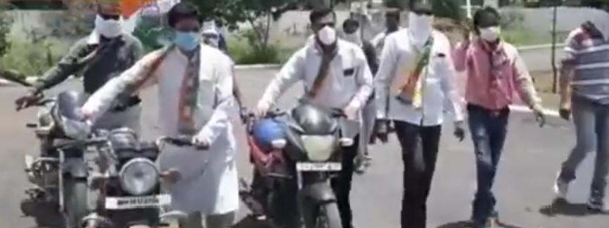 महाराष्ट्र प्रदेश काँग्रेस कमिटीचे प्रदेशाध्यक्ष तथा महसूल मंत्री ना.बाळासाहेब थोरात व जळगांव जिल्हा काँग्रेस कमिटीचे जिल्हाध्यक्ष अँड.संदिप पाटिल यांच्या आदेशानुसार , तसेच महाराष्ट्र प्रदेश काँग्रेस कमिटी अनु.जाती विभागाचे प्रदेशाध्यक्ष विजय अंभोरे व महाराष्ट्र प्रदेश काँग्रेस कमिटी कार्यक्रमाचे प्रशिक्षण समन्वयक योगेंद्र पाटिल यांच्या मार्गदर्शनाखाली जळगांव जिल्हा काँग्रेस कमिटी अनु.जाती विभागाचे जिल्हा कार्याध्यक्ष विवेक नरवाडे यांनी भाजपच्या केंद्र सरकार ने पेट्रोल व डिझेलची केलेली भरमसाठ दरवाढ मागे घेण्याबाबतआज दिनाक २ जुलै रोजी मोटर सायकल ढकलत ढकलत एक अनोखे आंदोलन करुन केंद्र सरकारचा निषेध केला व त्याविषया संदर्भात भुसावळ शहराचे प्रांताधिकारी यांचेशी चर्चा करुन निवेदन दिले.