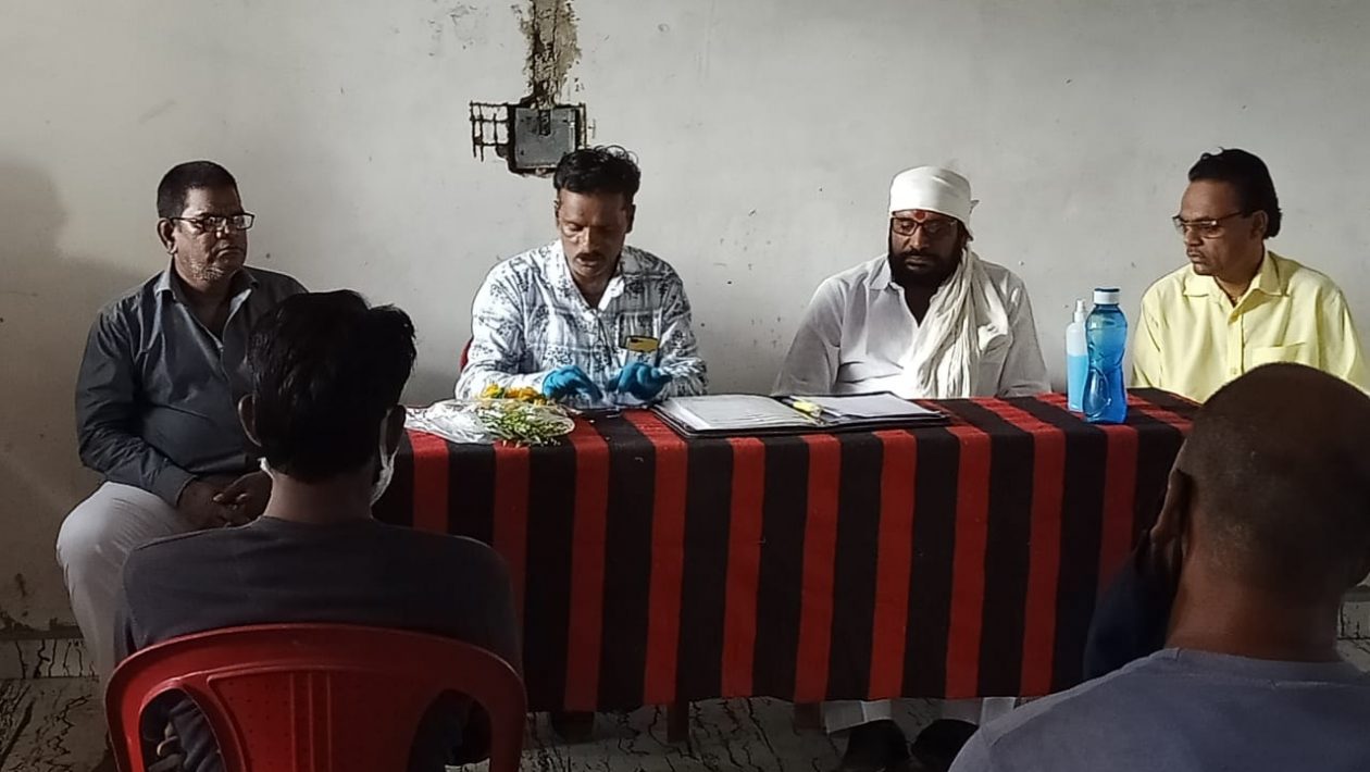 बैठक खान्देश विभाग प्रमुख सुनील खोखरे, जिल्ह्यध्यक्ष संतोष धामदे यांच्या मार्गदर्शनाखाली घेण्यात आली .बैठकीत सर्वानुमते सफाई कामगारांच्या सुरक्षेबद्दल चर्चा विनिमय करण्यात आला . सफाई कामगार यांच्या जिवाला सुद्धा धोका असून त्यांना सुरक्षा कवच मिळावे अशी एकमुखी मागणी व निर्णय यावेळी घेण्यात आला .तसेच विविध तक्रारी व मागण्या बाबत चर्चा करण्यात आली .
