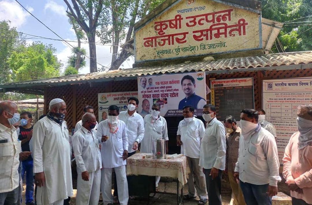 कृषी उत्पन्न बाजार समिती तर्फे सर्व शेतकरी वर्ग व्यापारी व कर्मचारी वर्गा करीता कोरोना विषाणू विरुद्ध लढा देण्यासाठी रोगप्रतिकारशक्ती वाढवण्यासाठी मोफत आयुर्वेदिक काढा वाटप करण्याकरीता स्टॉलचे उदघाटन कृषी ऊपन्न बाजार समिती सभापती सचिन चौधरीं यांचे हस्ते करण्यात आले.