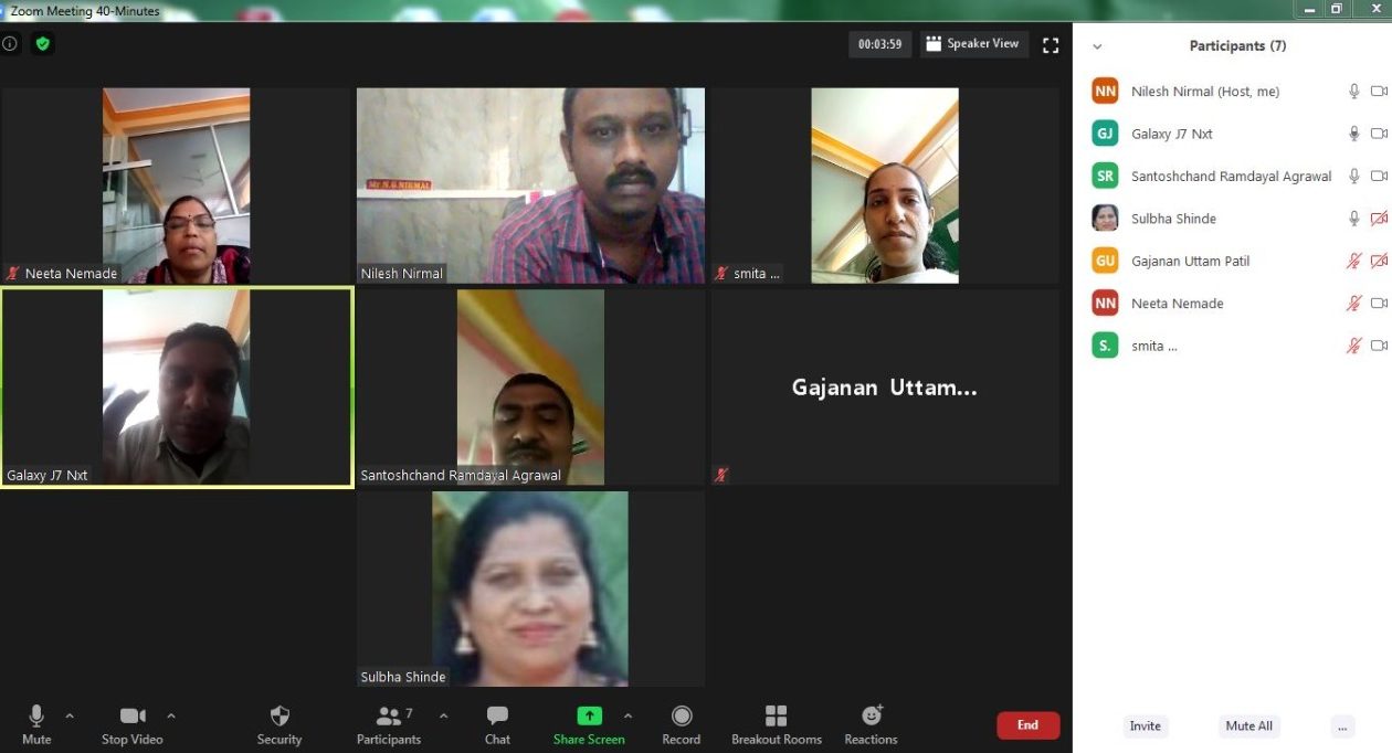 महाविद्यालयाचे प्राचार्य डॉ.आर.पी.सिंह, डीन डॉ. राहुल बारजिभे, डॉ.गिरीश कुलकर्णी, प्रा.अनंत भिडे, प्रा.धिरज अग्रवाल, प्रा.सुलभा शिंदे, प्रा.डॉ.नीता नेमाडे, प्रा.गजानन पाटील, प्रा.संतोष अग्रवाल, प्रा. स्मिता चौधरी, प्रा.धिरज पाटील, प्रा.दीपक साकळे, प्रा.निलेश निर्मल, प्रा.दीपक खडसे यांनी सहभाग नोंदवला.