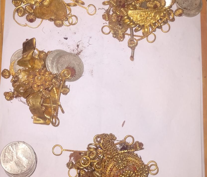 जळगाव, प्रतिनिधी – घराचे खोदकाम करतांना पुरातन सोन्याचे दागिने व चांदीचे शिक्के आढळून आल्याची घटना कासोदा येथे उघडकीस आली आहे. १९ लाख १७ हजार रुपये किमंतीचे हे सर्व दागिने व शिक्के स्थानिक गुन्हे शाखेच्या पथकाकडून जप्त करण्यात आले असून कासोदा पोलीस स्टेशनच्या ताब्यात देण्यात आले आहेत.
