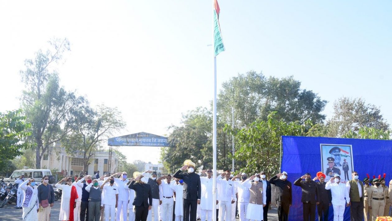 स्थानिक डॉ बाबासाहेब आंबेडकर मैदान येथे शासकीय ध्वजवंदन मोठ्या उत्साहात संपन्न झाले. प्रसंगी प्रांताधिकारी रामसिंग सुलाने यांचे हस्ते तिरंगा ध्वज फडकविण्यात आला . यावेळी आमदार संजय सावकारे, तहसीलदार संदिप धिवरे ,मुख्याधिकारी संदिप चिद्रवार ,नायब तहसीलदार इंगळे , गट विकास अधिकारी विलास भटकर , गटशिक्षणाधिकारी तसेच पालिकेचे युवराज लोणारी ,राजेंद्र नाटकर ,आशिक खान , नगरसेवक मुकेश गुंजाळ , प्रा सुनील नेवे , जेष्ठ सामाजिक कार्यकर्ते जे बी कोटेचा , मुन्ना सोनवणे , सिद्धार्थ जाधव , विजय सावळे,,सुदाम सोनवणे, राजू खरारे ,अर्जुना संघटनेचे संस्था अध्यक्ष नंदकिशोर पंड्या,नरवीरसिग रावळ, सचिव रवींद्र पाटील, योगिनी चौधरी,आकाश चौधरी,अनिल भिंगाने,रोहित श्रीवास्तव,आदी उपस्थित होते . पालिकेचे ब्रैंड अम्बेसेडर रणजीत राजपूत ,व उपविभागीय कार्यालय तहसील कार्यालय , पालिकेचे अधिकारी व कर्मचारी पोलिसा विभागाचे पोलिस निरीक्षक पड़घन बाजार पेठ निरीक्षक, राहुल गायकवाड़ , पोलिस अधिकारी व कर्मचारी होमगार्ड बैंड पथक उपस्थित होते