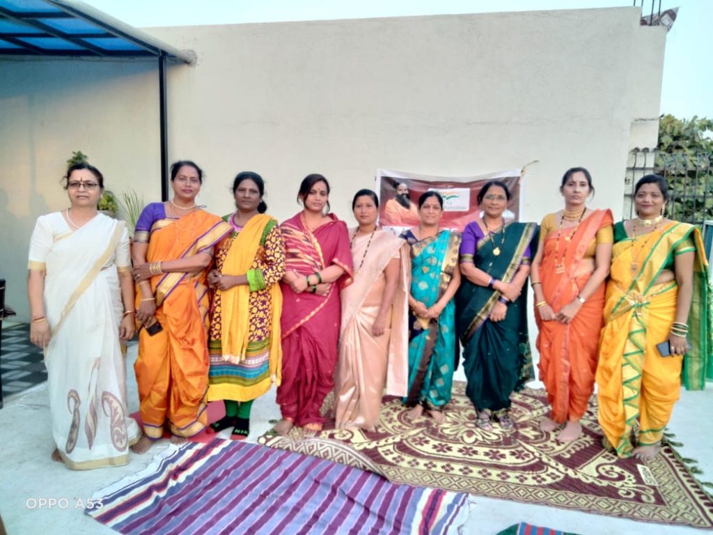 दरम्यान सामूहिक सूर्यनमस्कार साधना कार्यक्रमात आणि ७५ करोड सूर्यनमस्कार अभियानातंर्गत जॉयन्ट्स वसुंधरा गृपच्या महिला सदस्यानी नऊवारी परिधान करून सूर्यनमस्कार घातले .