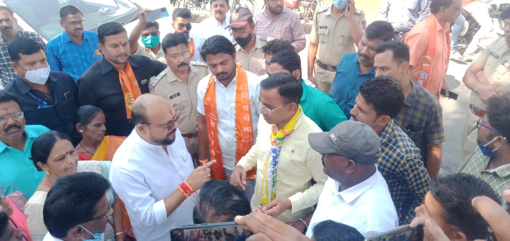 भुसावळ दि.( प्रतिनिधी) आज भुसावळ नगर परिषद हद्दीत विविध विकास कामाच्या भूमी पूजनाचा कार्यक्रम आयोजित करण्यात आला होता.त्या प्रसंगी पालकमंत्री गुलाबराव पाटील शहरात आले होते. एच डी एफ सी बँक जवळील भागात होणाऱ्या विकासकामांच्या भूमी पूजनाचा कार्यक्रम आटोपून पालक मंत्री यांचा ताफा जात असताना बाजारपेठ पोलिस स्टेशन जवळ वंचित बहुजन आघाडी चे जिल्हाध्यक्ष विनोद सोनवणे आपल्या पदाधिकारी कार्यकर्त्या सह थांबले होते जसा ताफा जवळ आला तसाच वंचित आपले निवेदन देण्यासाठी पालकमंत्र्यांचा गाडी कडे चालत गेले रस्त्यातच विनोद सोनवणे यांनी पालकमंत्र्यांना निवेदन देत विनंती केली कि , बाजारपेठ पोलिस स्टेशन जवळ जी जागा आहे ती छत्रपती शिवाजी महाराजांच्या पुतळ्यासाठी ठरली असताना ही गेल्या अनेक वर्षापासून अजून ही शिवरायाचा पुतळा बसविणे सत्ताधाऱ्यांना शक्य झाले नाही.ज्या महाराजांना अख्खा महाराष्ट्र आपले दैवत मानतो त्या जाणत्या राजाचे पुतळा रुपी स्मारक दुर्लक्षित राहत असेल तर शरमेची बाब आहे.आपण पालकमंत्री आहात राज्यात शिवसेनेचे सरकार आहे तेव्हा शिवरायाचा पूर्णाकृति पुतळा बसवून भुसावळकराची इच्छा पूर्ण कराल अशी मागणी निवेदन सादर करते वेळी करण्यात आली. सदर प्रसंगी या आधी याच जागेचे भाजपचे आमदार भूमिपूजन करणारे संजय सावकारे देखील पालक मंत्र्याच्या ताफ्यात हजर झालेले दिसून येत होते.