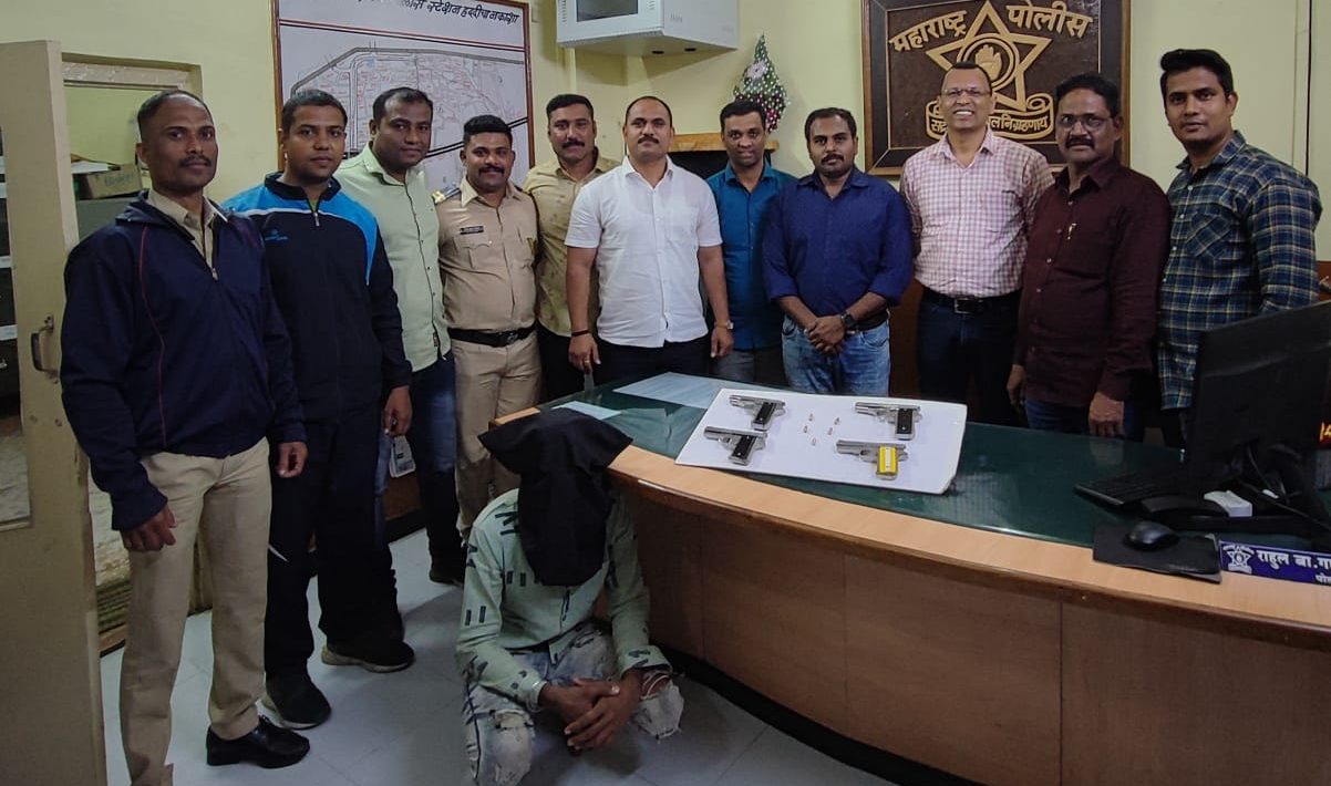 वरीत वर्णनाचे व किमतीचे चार गावठी पिस्तल व पाच जिवंत काडतुस आरोपीच्या ताब्यात मिळून आले .