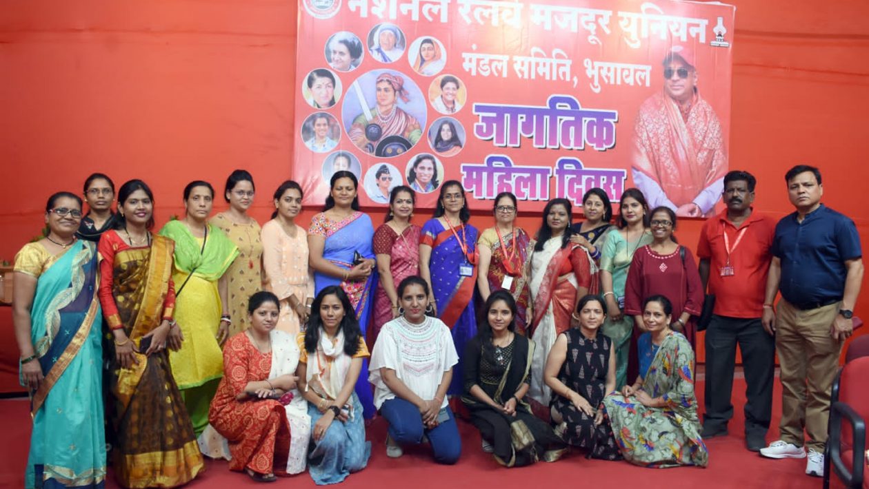 भुसावळ – नॅशनल रेल्वे मजदूर युनियन भुसावळ द्वारा दि२२ रोजी महिलादिन सप्ताहानिमित्त विविध कार्यक्रम कृष्णचंद्र सभागृहात दुपारी दोन वाजता घेण्यात आले यावेळी नॅशनल रेल्वे मजदूर युनियनच्या सहाय्यक महामंत्री कॉम कामाक्षी बागलवाडीकर व कॉम स्वाती म्हात्रे प्रमुख पाहुणे म्हणून उपस्थित होत्या कार्यक्रमाचे संचालन पुष्पा खाडे यांनी केले कामाक्षी बागलवाडीकर यांनी महिला दिवसाच्या सर्व रेल्वे महिला कर्मचाऱ्यांना शुभेच्छा देऊन चांगली काम करण्याचे आवाहन केले कॉम स्वाती म्हात्रे, मंडळ सचिव आर आर निकम,व मंडळ अध्यक्ष पुष्पेन्द्र कापडे यांनी महिलांना सूचना केल्या महिलांनी पुढे येऊन समाज उपयोगी कार्य करावे, महिलांना युनियन मध्ये मोठ्या पदाधिकाऱ्यांची पदे दिली आहे त्याचे जिवंत उदाहरण म्हणजे मुख्यालयातून आलेल्या महिला सहाय्यक महामंत्री होय,युनियनने या महिलांसाठी महिला टीम तयार केली आहे त्यात महिलांनी सक्रिय भाग घ्यावा असे आवाहन करण्यात आले,यावेळी वक्तृत्व स्पर्धा, मेहंदी स्पर्धा ,संगीत खुर्ची आदी स्पर्धा घेण्यात आल्या त्यात विजयी झालेल्या पहिल्या व दुसऱ्या महिलांना बक्षिसे कामाक्षी बागलवाडीकर व स्वाती म्हात्रे, आर आर निकम, पुष्पेंद्र कापडे यांच्या हस्ते देण्यात आल्या. यावेळी रेल्वेतील महिला कर्मचारी मोठ्या संख्येने उपस्थित होत्या.प्रसंगी पुष्पा कींडो,वनिता जाधव,पल्लवी अंबाडे,दीपा स्वामी,वर्षा जाधव,लीना बोंडे, पल्लवी चौधरी,सुनंदा डांगे, कविता देवगन,करुणा कुमारी,इंदीरा दमाडे, दिपाली बोबडे ,हर्षा रोटे,अक्षता गडवाल,ज्योती अडवाल,अलका बाविस्कर,विषाखा पगारे, इसरार खान,जी जी ढोले,पी पी बेंडाळे,ए.टी.खंबायत,योगेश बारी,अनंत झोपे, लेखराज राजपूत यांनी परिश्रम घेतले.
