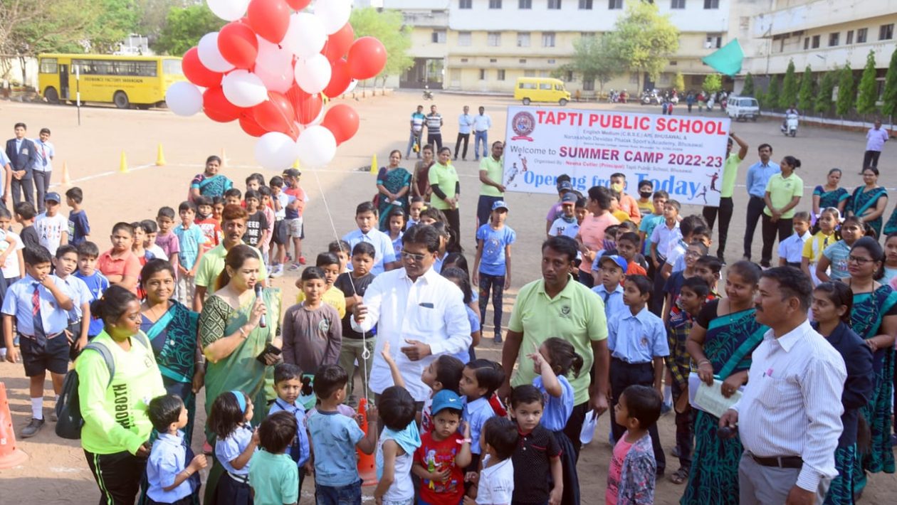 भुसावळ – येथील ताप्ती पब्लिक सीबीएसई इंग्लिश मिडीयम स्कूल मध्ये दोन महिण्यांसाठी समर कॅम्पचे (उन्हाळी शिबीराचे) आयोजन करण्यात आले आहे. यावेळी प्रमुख पाहुणे म्हणून संस्थेचे चेअरमन महेश फालक व प्रिन्सिपल निना कटलर उपस्थित होते .