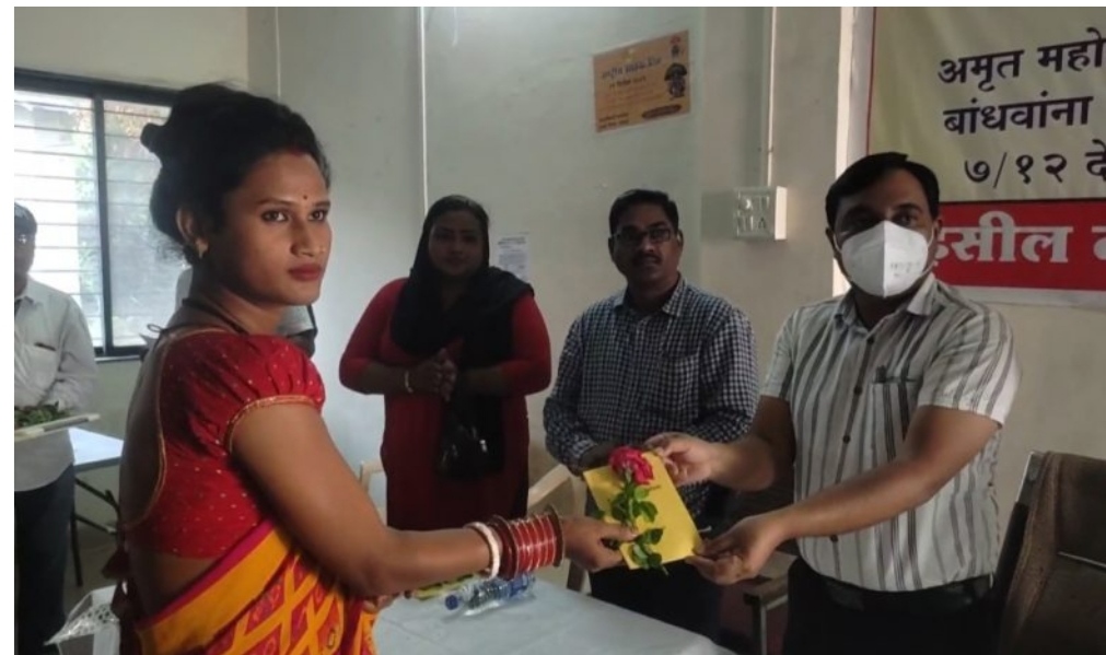 याप्रसंगी नायब तहसीलदार शशिकांत इंगळे,पुरवठा निरीक्षक अधिकारी ए.जे.इंगळे,पुरवठा निरीक्षक अतुल नगर गोजे,महसूल सहाय्यक रुपाली गुरव,घुले मॅडम, शिरसाठ नाना,अशांच्या उपस्थित तृतीयपंथी यांना शिधापत्रिका वाटप करण्यात आल्या