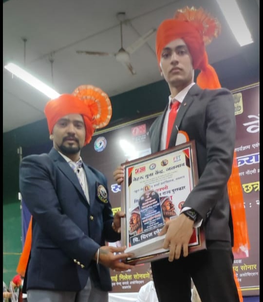 नरेंद्र जिल्हा युवा अधिकारी नेहरू युवा केंद्राचे निलेश सोनवणे यांचे हस्ते पुरस्कार देवून सन्मानित करण्यात आले . यावेळी पुरस्कार समिती अध्यक्ष व पूजा सोनवणे यांच्यासह मान्यवर उपस्थित होते .