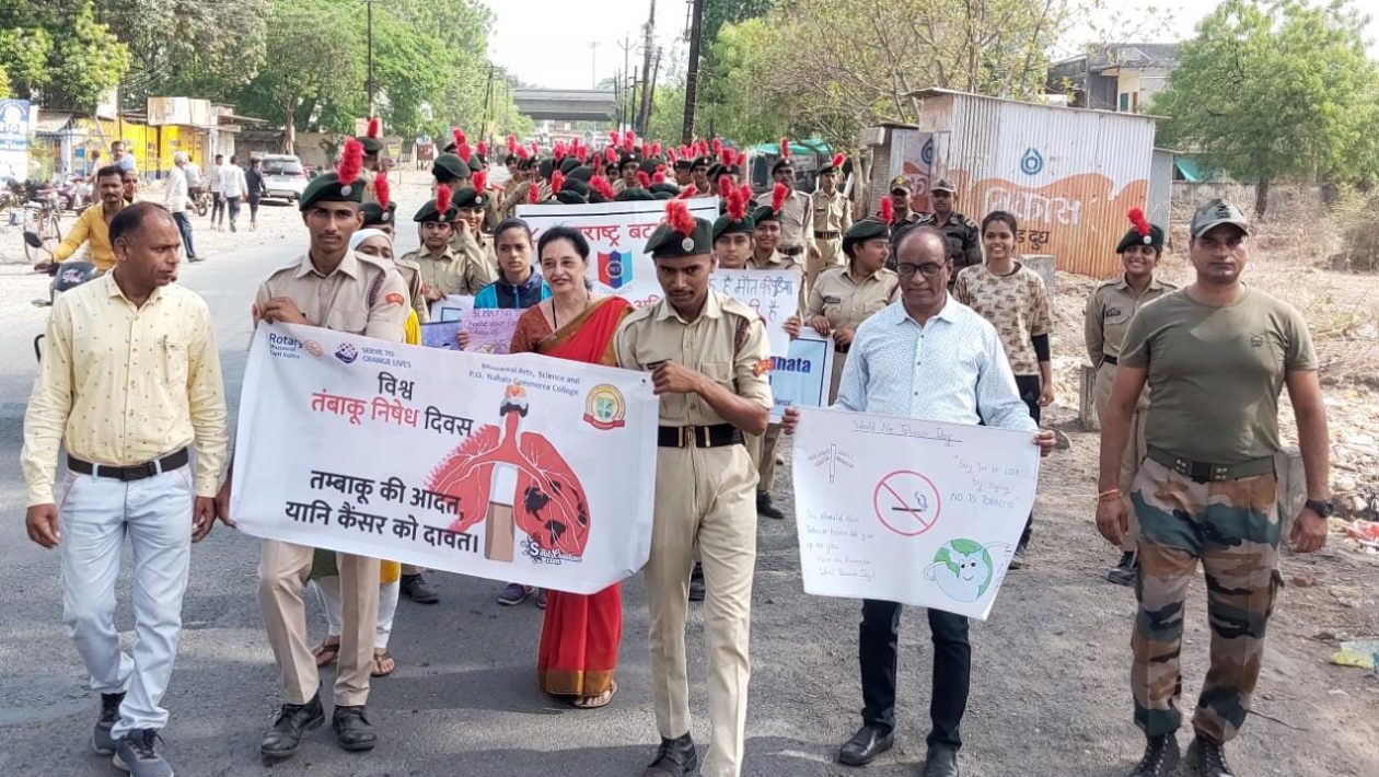 भुसावळ – ३१ मे जागतिक तंबाखू विरोधी दिनानिमित्त येथील नाहाटा कॉलेज एन सी सी यूनिट आणि रोटरी क्लब भुसावळ ताप्ती व्हॅली , यांच्या संयुक्त विद्यमाने आज मंगळवार रोजी सकाळी शहरात स्थानिक नाहाटा महाविद्यालया पासून जनजागृतीपर रॅली काढण्यात आली .