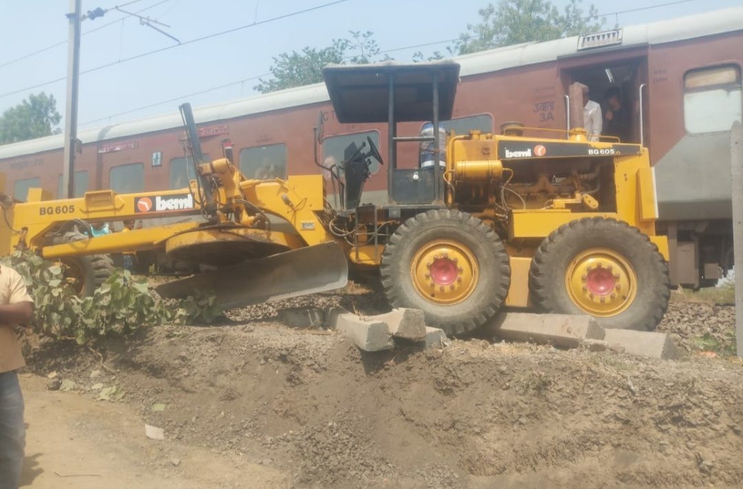 शनिवारी सकाळी 10.53 वाजता परधाडे-पाचोरा रेल्वे स्थानकामध्ये किलोमीटर 379/10-8 च्याबाजूने अप मेन लाईनपासून सहा मीटर दूर रेल्वेच्या तिसर्या लाईनीचे काम सुरू आहे. पुणे येथील आयएससी प्रोजेक्ट बीएनए इंफ्रा ही कंपनी काम करीत आहे. यावेळी ग्रेडर मशीनने काम सुरू असतांना ग्रेडर मशीन मागे घेत असतांना उतावळेपणा आणि हलगर्जीपणाने चालकाने मशीन चालविले व जेसीबी चालकाचे संतुलन सुटल्याने ग्रेडर मशीन अप मेन लाईनीवरून जात असलेल्या गाडी (12520) कामाख्या -एलटीटी एक्स्प्रेसच्या इंजिनाला (इंजीन नंबर 37460, डब्ल्यू एपी – 7) धडकले. त्यावेळी इंजिनाचे कॅटल गार्ड, सैडर्स असेंबली, फुट स्टेप्स, ब्रेक सिलेंड, ऑपरेटींग हॅन्डल तसेच ब्रेक इंडीकेटरचे नुकसान झाले. ग्रेडर मशीन लागल्याने त्याचे सुद्धा अॅक्सल तुटल्याने मागील चाक वेगळे झाले. यामुळे कामाख्या एक्सप्रेस ही गाडी 54 मिनिटे उशिराने धावली. यावेळी सिनियर सेक्शन इंजिनीयर बृजेश कुमार, व्ही.ई.सूर्यवंशी, एस.पी.जोशी, एन.एस.राजपूत, योगेश थोरात, डी.एच पाटील यांनी भेट देऊन त्यांनी संयुक्त अहवाल तयार केला.