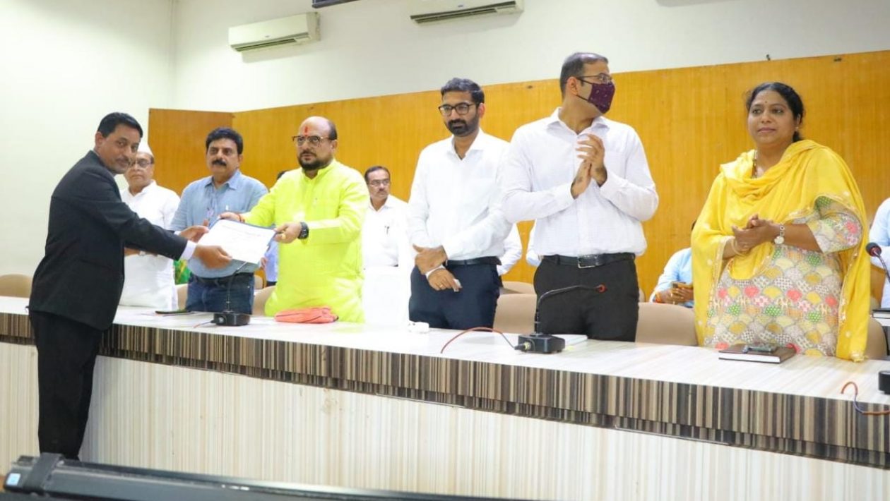 फोटो – पालकमंत्री गुलाबराव पाटील व आमदार संजय सावकारे यांच्या कडून पुरस्कार स्विकारतांना बियाणी मिलीटरी स्कुलचे प्रिंसीपल डी एम पाटील.