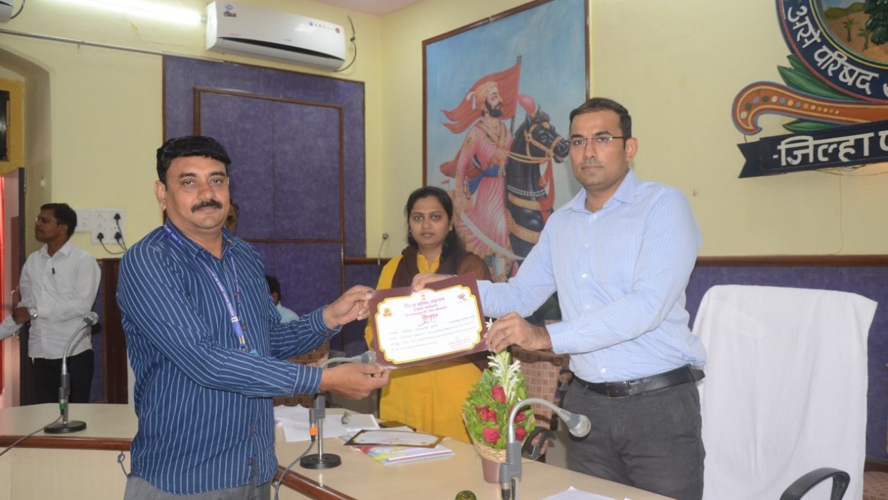 जिल्हा परिषदेच्या विविध विभागांतर्गत उत्कृष्ट कार्यालयीन कामकाज करणाऱ्या कर्मचाऱ्यांचा उत्कृष्ट कर्मचारी कर्मचारी पुरस्कार देऊन गौरव करण्यात येतो . त्याअंतर्गत जिल्हा परिषदेच्या आरोग्य विभागाचे सहाय्यक प्रशासन अधिकारी दिनेश झोपे यांना फेब्रुवारी २०२२ साठी व अतिरिक्त मुख्य कार्यकारी अधिकारी यांचे स्वीय सहाय्यक किरण लाडवंजारी यांना मे २०२२ साथीचा उत्कृष्ट कर्मचारी पुरस्कार जाहीर करण्यात आला. सोमवारी जिल्हा परिषदेच्या साने गुरुजी सभागृहात या पुरस्काराचे वितरण मुख्य कार्यकारी अधिकारी यांचे हस्ते करण्यात आले. या वेळी उपमुख्य कार्यकारी अधिकारी स्नेहा कुडचे ,यांचेसह सर्व विभागांचे सहाय्यक प्रशासन अधिकारी तसेच कनिष्ठ प्रशासन अधिकारी उपस्थित होते.