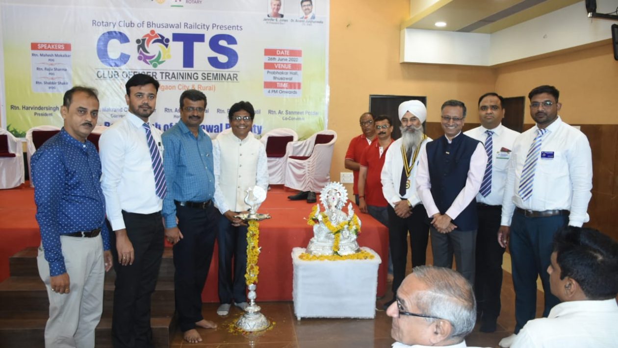 भुसावळ – रोटरी क्लब ऑफ भुसावळ रेलसिटी तर्फे नुकताच शहरातील प्रभाकर हॉल येथे जळगाव जिल्ह्यातील सर्व रोटरी क्लबच्या आगामी पदाधिकाऱ्यांचा प्रशिक्षण मेळावा आयोजित करण्यात आला.नवीन रोटरी वर्ष १ जुलै पासून सुरू होत असून, आगामी वर्षात पदाधिकाऱ्यांनी करावयाची कार्य व त्यांच्या जबाबदाऱ्या याबद्दल रोटरीचे माजी प्रांतपाल शब्बीर शाकीर, महेश मोकाळकर आणि राजीव शर्मा यांनी मार्गदर्शन केले, तर डॉ राहुल कुलकर्णी यांनी तांत्रिक बाबी समजावून सांगितल्या. सदर कार्यक्रमात जिल्हाभरातील १७ रोटरी क्लबचे १२५ पदाधिकारी आणि सदस्यांनी सहभाग नोंदवला. या मेळाव्याचे मुख्य संयोजक रोटरीचे आगामी अध्यक्ष डॉ मकरंद चांदवडकर तर सह संयोजक आगामी सचिव आर्किटेक्ट सन्मीत पोतदार व माजी अध्यक्ष चेतन पाटील हे होते. यशस्वितेसाठी रोटरी रेल सिटीचे अध्यक्ष हर्विंदरसिंह ठेठी, सचिव आशिष अग्रवाल,विकास पाचपांडे तसेच सर्व सदस्यांनी परिश्रम घेतले.