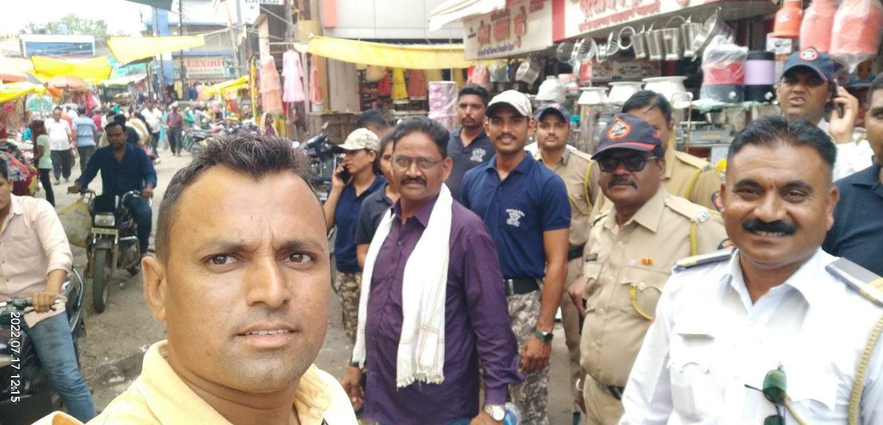 रविवारच्या बाजारात चोऱ्या, मोटार सायकल चोरी, खिसे कापणे यासारखे प्रकार होऊ नये म्हणून १७ जुलै रोजी सकाळपासून उप विभागीय पोलीस अधिकारी सोमनाथ वाघचौरे व बाजारपेठ पोलिस निरीक्षक राहुल गायकवाड यांच्या मार्गदर्शनाखाली ए एस आय शरीफ काझी, पो कॉ जावेद शहा, हे. कॉ . योगेश जाधव वाहतूक पोलिस स्टाफ व पूर्ण आरसीपी प्लाटून यांचे पथक आठवडे बाजार व परिसरात फिरत होते . दरम्यान बेशिस्त वाहनांवर कारवाई देखील करण्यात आली .