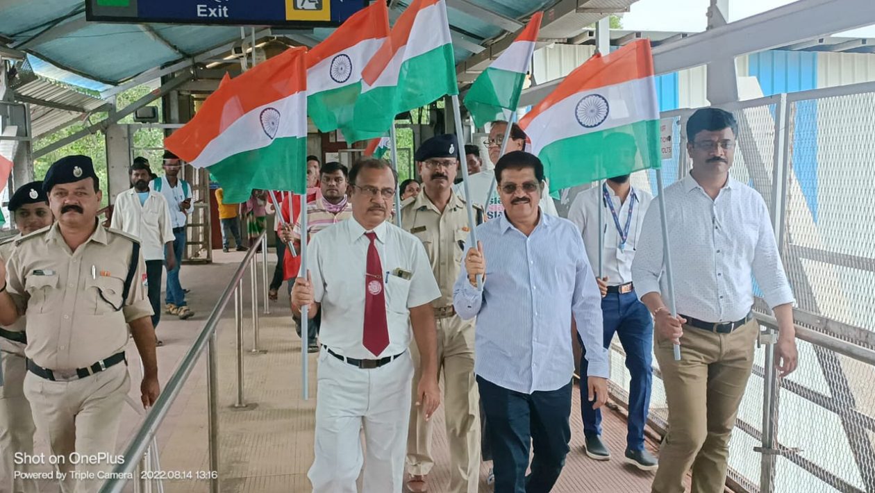 कार्यक्रमाचे उद्घाटन यावेळी उपस्थित जळगाव शहराचे आमदार राजू मामा भोळे यांचा हस्ते करण्यात आले. सिनियर डीपीओ एन. एस. काझी यांचा मार्गदर्शना खाली हा कार्यक्रम पार पडला. यावेळी स्टेशन वरील कुली व प्रवाशांना आमदार राजू मामा भोळे यांच्या कडून तिरंगा चे वाटप करण्यात आले. तसेच रैली काढून भारत माता की जय, वंदे मातरम् चा घोषणा देत कार्यक्रम हा संपन्न झाला.