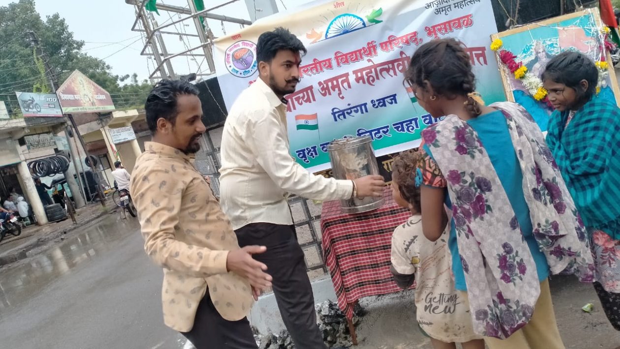 भुसावळ शहरामध्येसर्व स्मारकांवर तिरंगा ध्वज लावण्यात आले , तसेच ध्वज वाटप, वृक्ष वाटप व शहरातील तिरंगा पदयात्रेला व नागरिकांना अखिल भारतीय विद्यार्थी परिषदेकडून 75 लिटर चहा वाटण्यात आला.