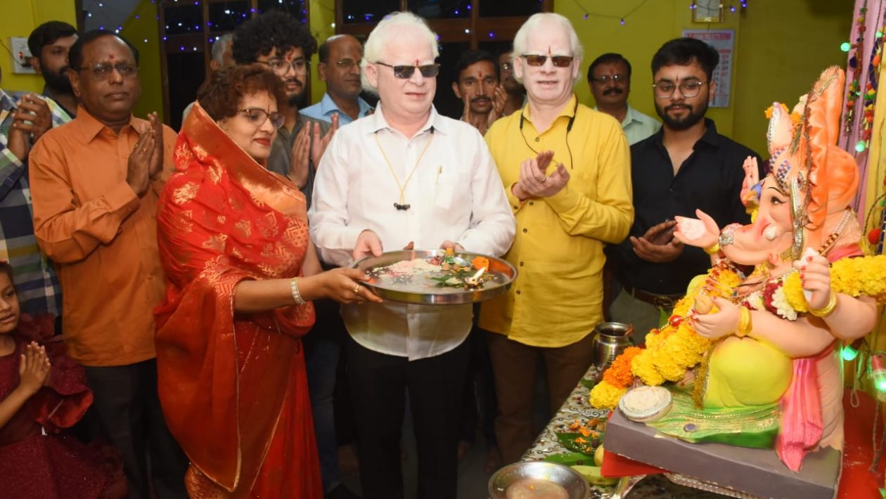 भुसावळ – येथील बियाणी चेंबर्स मध्ये आरती अर्चना करून जल्लोषात ३१ रोजी आराध्य दैवत श्री गणपतीची स्थापना करण्यात आली. यावेळी बियाणी एज्युकेशन ग्रृपचे चेअरमन मनोज बियाणी यांनी त्यांच्या सुविद्यपत्नी तथा बियाणी गृपच्या सचिव डॉ.संगीता बियाणी यांच्या हस्ते बाप्पाची विधिवत पूजा करून बाप्पाची स्थापना केली.