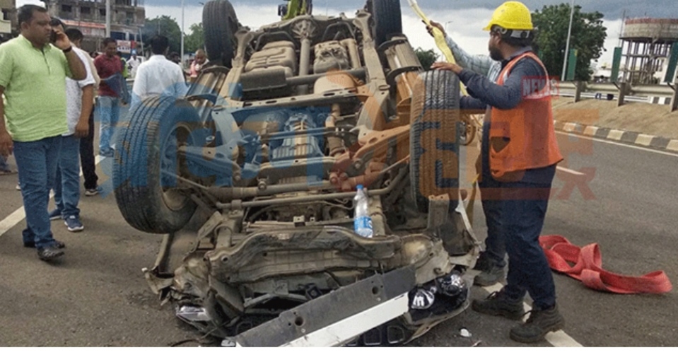 चालक गणेश झोपे हे स्कॉर्पिओ (एम.एच.19 बी.एस.1919) घेवून मुक्ताईनगरकडून जळगावकडे निघाले असताना नाहाटा महाविद्यालयाजवळील चौफुलीजवळ वाहन अनियंत्रीत झाल्याने पलटी झाले मात्र सुदैवाने झोपे यांना कुठलीही दुखापत झाली नाही. याचवेळी माजी मंत्री एकनाथराव खडसे हे आपल्या वाहनाने निघाले असताना त्यांनीदेखील थांबून अपघाताची चौकशी केली. भाजपाचे शहराध्यक्ष परीक्षीत बर्हाटे यांनीदेखील धाव घेतली तर बाजारपेठ पोलिसांनी अपघातस्थळी धाव घेत अपघातग्रस्त वाहन बाजूला करून वाहतूक सुरळीत केली. अपघात प्रकरणी गुन्हा दाखल नसल्याचे सूत्रांनी सांगितले.