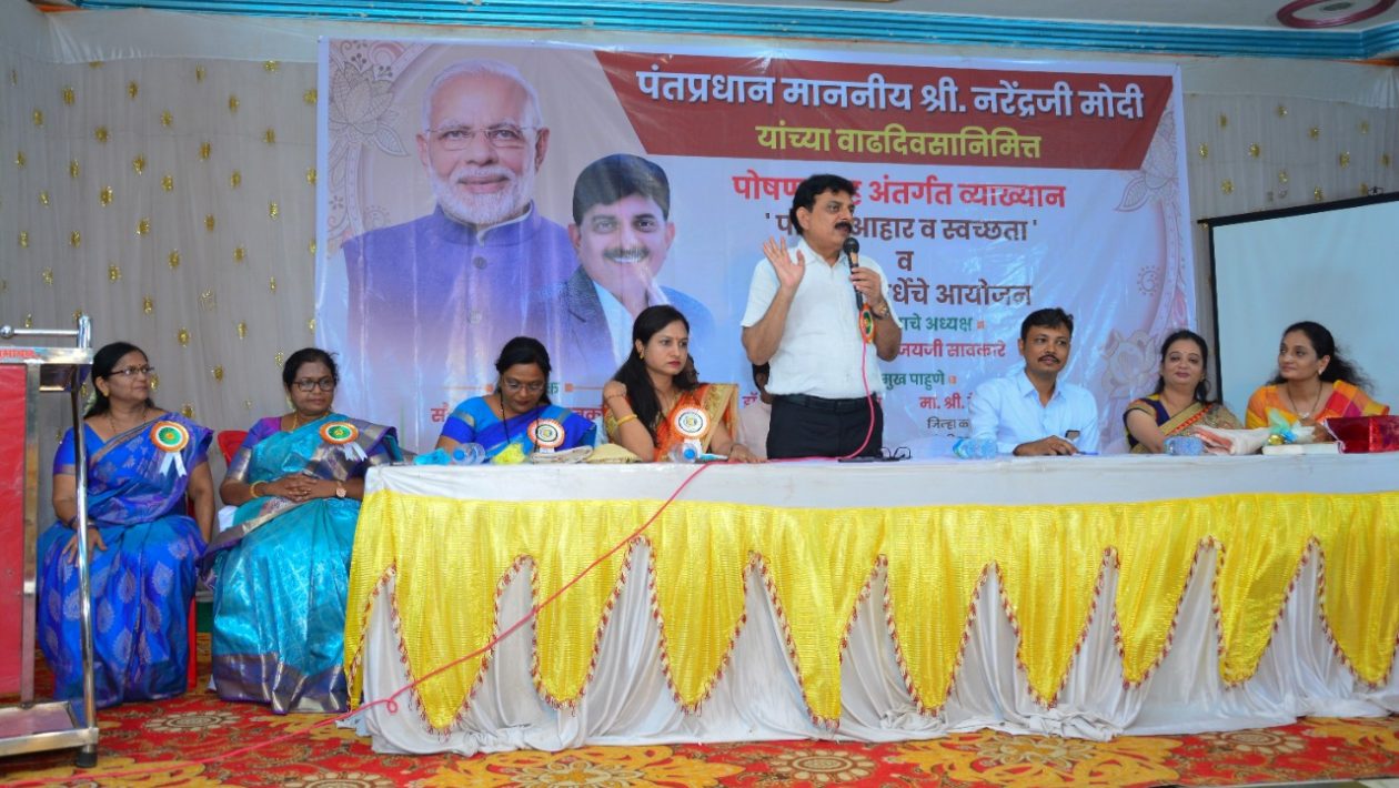 भुसावळ – भुसावळ तालुक्यातील ग्रामीण प्रकल्पाचा पोषण माह 2022 तालुकास्तरिय मेळावा दि 17 सप्टेंबर रोजी स्थानिक लोणारी मंगल कार्यालयात घेण्यात आला. या कार्यक्रमास प्रमुख पाहुणे खासदार रक्षाताई खडसे, अध्यक्षस्थानी आमदार संजय सावकारे, जिल्हा कार्यक्रम अधिकारी देवेंद्र राऊत , रजनी सावकारे (अध्यक्षा प्रतिष्ठा महिला मंडळ) यांची विशेष उपस्थिती होती . व्यासपीठावर डॉ मृणाल पाटील , जयश्री चौधरी, सीडीपीओ रेखा गायकवाड,नगरसेवक परीक्षित ब-हाटे , भाजप जिल्हा युवा मंच अध्यक्ष श्रीकांत महाजन , कुमावत सर होते. खासदार रक्षा खडसे यांनी पंतप्रधान नरेंद्र मोदी सर खासदारांच्या सभेतही पौष्टिक आहार बाबत मार्गदर्शन करतात हे आवर्जुन सांगितले.त्यांनी पंतप्रधान यांच्या वाढदिवसानिमित्त हा कार्यक्रम आयोजित केल्याबद्दल रजनी सावकारे यांचे कौतुक केले.