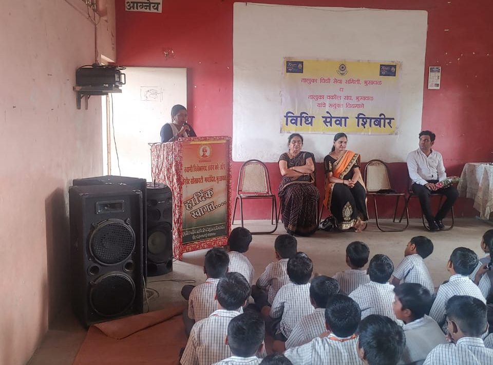 विवेकानंद शाळेत भुसावळ वकील संघ व तालुका विधी सेवा समिती यांच्याद्वारे जागतिक कन्या दिनानिमित्त मुलींना मार्गदर्शनपर कार्यक्रमाचे आयोजन करण्यात आले.