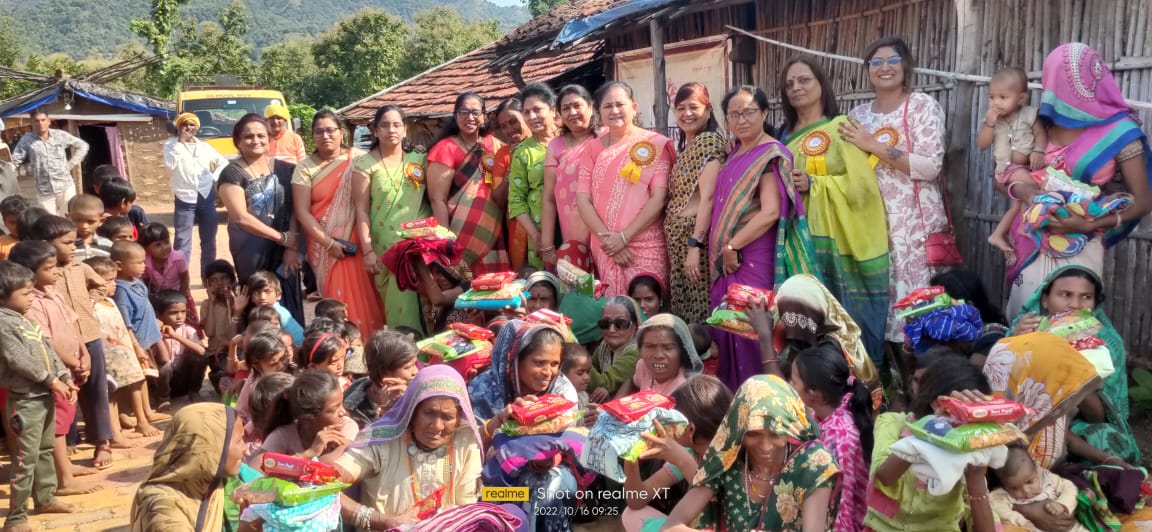 चोपडा तालुक्यातील आदिवासी पाडा पानशेवडी व अर्जुन पाडा येथे जवळ जवळ १५० कुटुंबांना दिवाळी फराळ व कपडे वाटप करण्यात आले.यावेळी अध्यक्ष सौ मनिषा पाटील, सचिव ज्योती राणे, नूतन तासखेडकर, किमया पाटील, संगीता चौधरी , नेहा जगताप रेणुका हींगु आशा मौर्य, शशी शर्मा, माधुरी शिंपी, योगिता बाविस्कर, छाया पाटील, भारती कापडणे यांच्या हस्ते दिवाळी फराळ मिठाई व कपडे वाटप करण्यात आले. यासाठी महापौर जयश्री ताई,उर्मिला सोनी, भारती सोनी,पूर्णिमा देसाई ,उज्वला पाटील पाचोरा ,वर्षा पाटील , अँड सीमा जाधव ,डॉ प्राची महाजन व नारीशक्तीच्या प्रतिनिधींचे आर्थिक सहकार्य लाभले तसेच प्रेमराज पवार यांचेही सहकार्य लाभले.