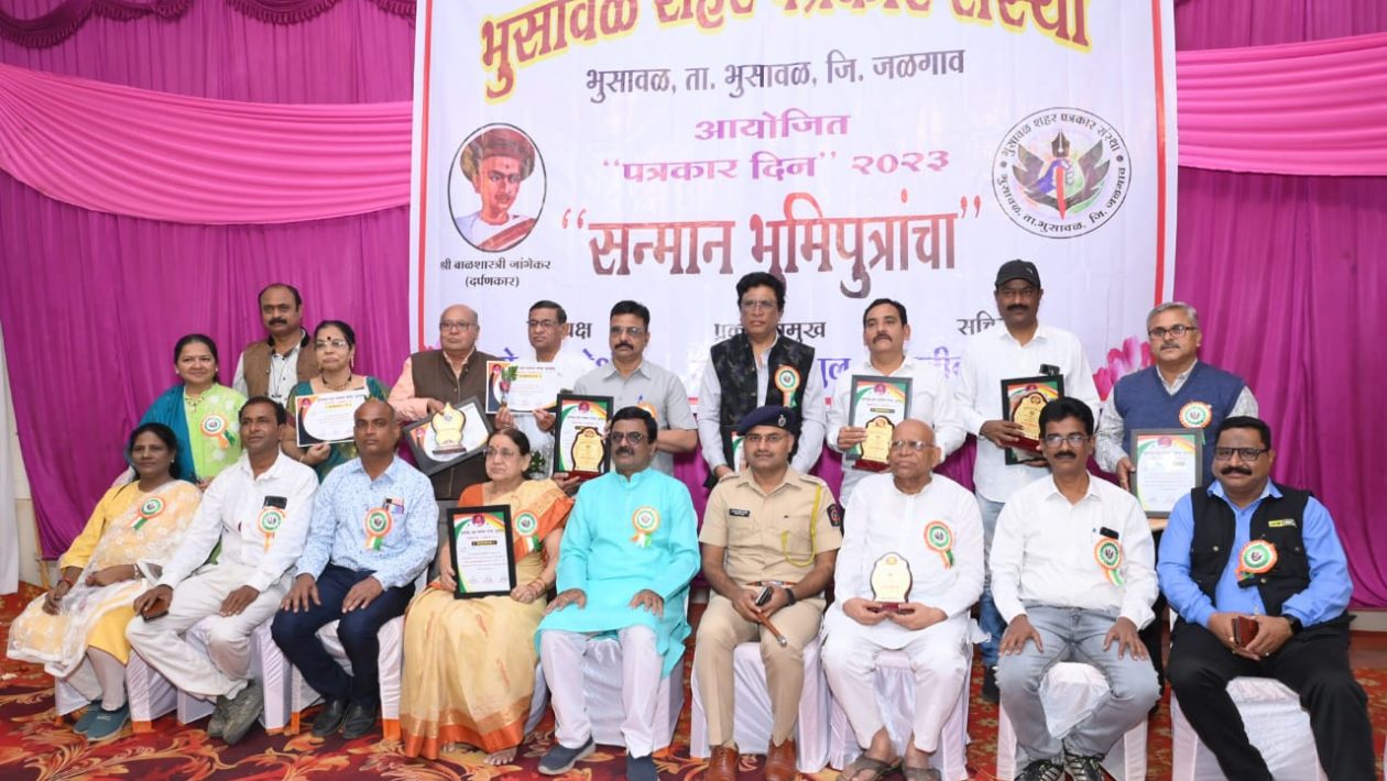 शहर पत्रकार संस्थेतर्फे भुसावळ शहरातील मुळ रहिवासी असलेल्या मात्र पत्रकारीतेच्या निमित्ताने बाहेरगावी स्थायिक झालेले भुमिपुत्र , लोकशाहीच्या पत्रकार सौ शांता वाणी , सुरेश उज्जैनवाल , नरेंद्र कदम ,महेश मांडे , ललित खरे , शेखर पाटील