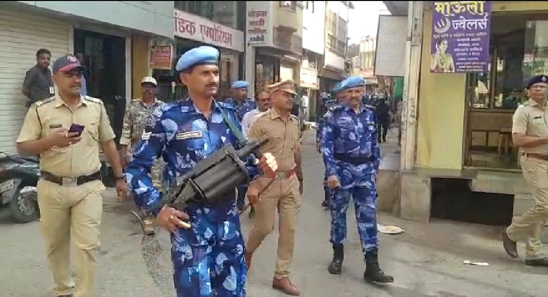 या पथकात सीआरपीएफची रॅपिड अँक्शन फोर्स, पोलीस मुख्यालयाकडून आलेले तीन आरसीपी प्लाटून , शहर पोलीस कर्मचारी, वाहतूक शाखा, बाजारपेठ पोलीस कर्मचारी यांनी रुट मार्च केला. यामध्ये पाच अधिकारी 65 कर्मचारी यांचा समावेश होता
