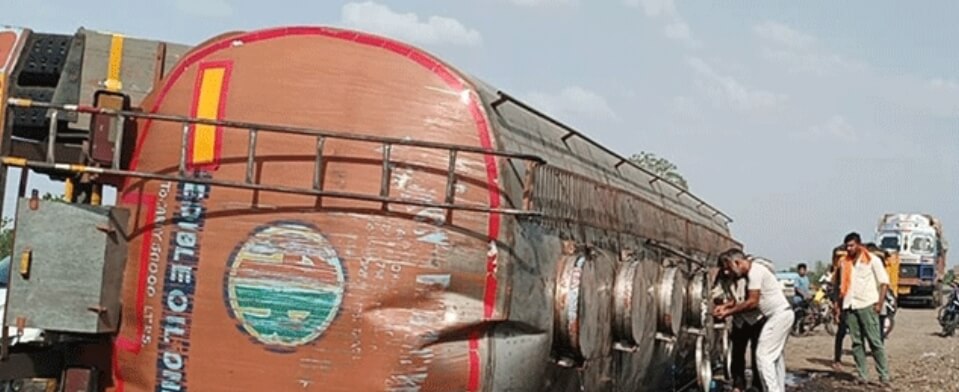 अपघात टाळण्याच्या प्रयत्नात उलटला टँकर