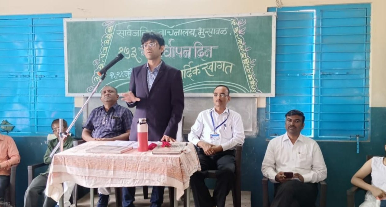 भुसावळ येथील सार्वजनिक वाचनालयाच्या 153 व्या वर्धापनदिनाचे औचित्य साधून के. नारखेडे विद्यालयात वाचनालय आपल्या शाळेत हा उपक्रम राबविण्यात आला. या उपक्रमांतर्गत विद्यार्थ्यांशी संवाद साधताना डॉ. हेमंत अग्रवाल यांनी आरोग्याच्या विविधांगी सूचना दिल्या. व्यासपीठावर के. नारखेडे विद्यालयाचे प्राचार्य नितीन किरंगे, वाचनालयाचे अध्यक्ष हिंमत ठाकूर, बालभारतीच्या मराठी भाषा अभ्यास मंडळाचे सदस्य डॉ. जगदीश पाटील, वाचनालयाचे ग्रंथपाल नितीन तोडकर, अवधूत दामोदरे यांची उपस्थिती होती. प्रास्ताविकात ग्रंथपाल नितीन तोडकर यांनी वाचनालयाच्या इतिहासाचा सर्वांगीण आढावा घेतला. आरोग्याकडून वाचनाकडे या विषयावर बोलताना डॉ. हेमंत अग्रवाल यांनी स्वच्छता व आरोग्य या विषयाची माहिती देऊन प्रतिबंधात्मक उपाययोजना सांगितली. सूत्रसंचालन डॉ. जगदीश पाटील यांनी तर आभार के. नारखेडे विद्यालयाचे ग्रंथपाल विनोद भंगाळे यांनी मानले.