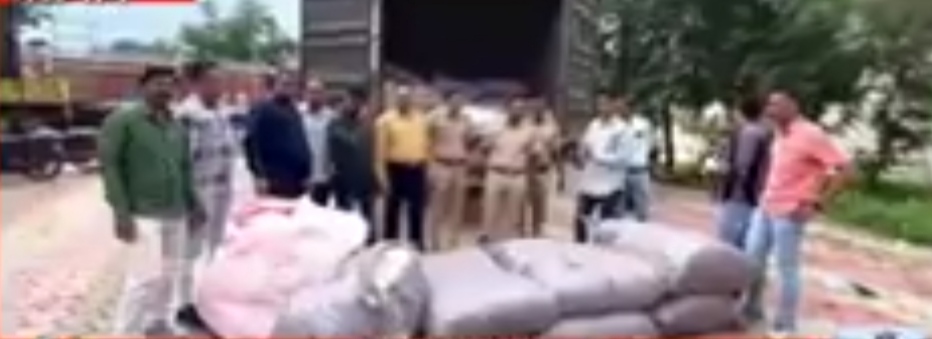 यात राखाडी विटकरी रंगाच्या मोठया गोण्या, प्रत्येक गोणी मध्ये दोन सफेद रंगाच्या गोण्या व त्या प्रत्येक गोणीत ०४ लहान आकाराच्या सफेद रंगाच्या पिशव्या दिसत असुन, त्यातील प्रत्येक सफेद रंगाच पिशवीत २६ प्रिमीयम राजनिवास, सुगंधी प्रिमीयम राजनिवास, सुगान्धित पान मसाला असा मजकुर लिहलेले पाकीटे प्रत्येकी किंमत १९२ रूपये.प्रमाणे ३७,९३,९२०, १८ गुलाबी रंगाच्या गोण्या, प्रत्येक गोणीत लहान ०५गोण्या, त्यातील प्रत्येक लहान ०८ सफेद रंगाच्यापिशव्या, त्यातील प्रत्येक सफेद रंगाचे पिशवी २६ प्रिमावर सुगंधी पानमसाला.०१ T असा मजकुर लिहलेले पाकीट प्रत्येकी किंमत ४८ रूपय ८.९ ८,५६०/-रु एक टाटा कंपनीचा मोठा बंदिस्त कंटेनर ज्याचा क्र (UP – SCCN५६ ९८ ) असलेला १० लाख रुपये किमतीचा असा एकूण ५६.लाख ९२ हजार रुपयांचा मुद्देमाल जप्त करण्यात आला आहे .