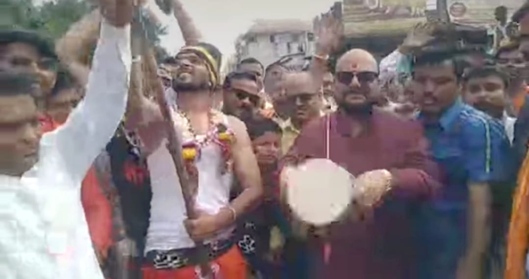 पालकमंत्री ना.पाटील डमरू वाजवत सहभागी झाले ‘ कावड ‘ यात्रेत..!!