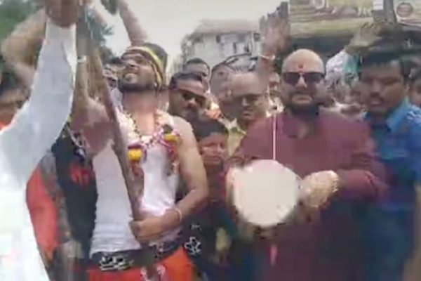 धरणगाव/ –धरणगाव शहरातून निघालेल्या कावडयात्रेत राज्याचे पाणीपुरवठा व स्वच्छता मंत्री तथा पालकमंत्री गुलाबराव पाटील सहभागी झाले होते.’ हर हर महादेव , ‘ भोले बाबा की …
