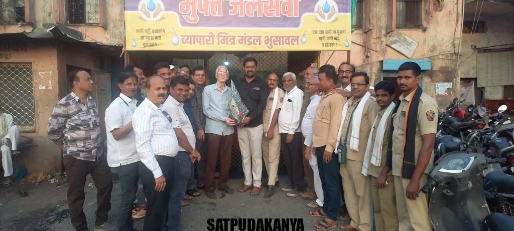 भुसावळ मध्ये तापमानाबाबत उच्चांक गाठत असताना पिण्याच्या पाण्याची सार्वजनिक व्यवस्था बस स्थानक परिसरात नसल्याने येथील व्यापारी मित्र मंडळ तर्फे नुकतेच सुसज्ज मोफत थंडगार जलसेवेचे उद्घाटन व्यापारी मित्र मंडळाचे प्रमुख राधेश्यामजी लाहोटी व आगार प्रमुख राकेश शिवदे साहेब यांच्या शुभहस्ते करण्यात आले .प्रथम आगार प्रमुख राकेश शिवदे व पर्यावरण जागर प्रतिष्ठानचे नाना पाटील सर यांच्या हस्ते व्यापारी संघाचे अध्यक्ष राधेश्यामजी लाहोटी व मित्रमंडळाचे पुष्पगुच्छ देऊन सत्कार करण्यात आले . यावेळी या मोफत जल सेवेचा उपयोग प्रवाशांनी घ्यावा असे आवाहन राधेश्यामची लाहोटी यांनी केले . व्यापारी मित्र मंडळातर्फे दरवर्षी बस स्थानक वर पाणपोईची व्यवस्था करण्यात येते .कायमस्वरूपी रीतसर जागा उपलब्ध करून दिली तर कायम Ro युक्त जलसेवा उपलब्ध करून दिली जाईल असे राधेश्यामजी लाहोटी यांनी सांगितले .