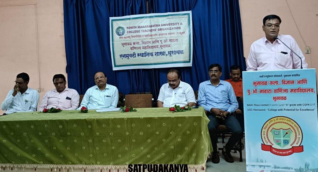 भुसावळ – यूजीसीच्या रेगुलेशनशी विसंगत कायदा असू शकत नाही वेळोवेळी उच्च न्यायालयाने देखील दखल घेऊन निर्णय दिलेले आहेत असे असतानाही महाराष्ट्र शासनाने वेळोवेळी जीआर काढून यूजीसीच्या नियमांमध्ये बदल केलेले आहेत नियमांची पायमल्ली केलेली आहे याच्या विरोधात महाराष्ट्र प्राध्यापक महासंघाचे आदेशान्वये एन. मुक्टो संघटनेने तीव्र आंदोलनाचा पवित्र उचललेला आहे यूजीसीच्या नियमाप्रमाणे सर्वच महाविद्यालयातील एकूण प्राध्यापकांपैकी 90% प्राध्यापक रेगुलर असले पाहिजे आणि केवळ 10% प्राध्यापक सीएचबी धारक असले पाहिजे असा नियम असतानाही महाराष्ट्रात नियमित प्राध्यापकांपेक्षा सीएचबी प्राध्यापकांची संख्या अधिक आहे बऱ्याच वेळा उच्च शिक्षण क्षेत्रात काम करणारे अधिकारी मंत्री मंडळाच्या निर्णयाला मानत नाही युजीसीचा नियम मानत नाही राज्यपालांनी आदेश काढले तरी त्या संदर्भात निर्णय घेतले जात नाही अशा उच्च शिक्षण क्षेत्रातील काम करणारे अधिकारी संविधानाचा वापर करीत नाही त्यांच्यावर कडक कार्यवाही होऊन प्राध्यापकांच्या न्याय मागण्या महाराष्ट्र शासनाने पूर्ण कराव्या यासाठी प्राध्यापक रस्त्यावर उतरले आहेत या संदर्भात आज भुसावळ येथील कला, विज्ञान आणि पू. ओ. नाहाटा वाणिज्य महाविद्यालयात परिसरातील प्राध्यापकांच्या मेळाव्याचे आयोजन करण्यात आले या मेळाव्यात केंद्रीय कार्यकारिणीचे अध्यक्ष प्रा. नितीन बाविस्कर प्रा. एकनाथ नेहेते केंद्रीय कार्यकारिणीचे पदाधिकारी जिल्हा संघटनेचे अध्यक्ष डॉ के जी कोल्हे, सचिव डॉ. ए.डी.गोस्वामी, सहसचिव विजय सोनजे, स्थानिक शाखेचे अध्यक्ष प्रा दीपक पाटील व्यासपीठावर उपस्थित होते यावेळी प्रा. नितीन बाविस्कर यांनी मेळाव्याचे अध्यक्षस्थान भूषवून अध्यक्षीय समारोप केला. त्यात त्यांनी १६ ऑगष्ट रोजी विद्यापीठावर आयोजित केलेल्या आंदोलनात बहुसंख्येने उपस्थित रहावे असे आवाहन केले. प्रा.एकनाथ नेहेते यांनी आंदोलनाची भूमिका सभागृहासमोर मांडली. त्यात जोपर्यंत आपण आपली ताकद दाखवत नाही तोपर्यंत शासन आपल्या मागण्या मंजूर करणार नाही. एनईपी आणि वर्कलोड संदर्भात भूमिका मांडली. त्यानंतर प्रा डॉ अनिल पाटील यांनी संघटनेचा इतिहास मांडून संघटना कोणत्या जातीपातीची नसून प्राध्यापक ही संघटनेची जात आहे अशी भूमिका विशद केली. आंदोलनाचे सूत्रसंचालन प्रा दीपक पाटील यांनी तर आभारप्रदर्शन डॉ किरण वारके यांनी मानले . त्यानंतर दिनांक 16 ऑगस्ट 2024 रोजी विद्यापीठावर भव्य दिव्य मोर्चाचे आयोजन केलेले आहे या मोर्चात बहुतांश प्राध्यापकांनी सहभागी व्हावे असे आव्हान करण्यात आले मेळाव्याच्या यशस्वीतेसाठी स्थानिक शाखेच्या पदाधिकाऱ्यांनी परिश्रम घेतले म