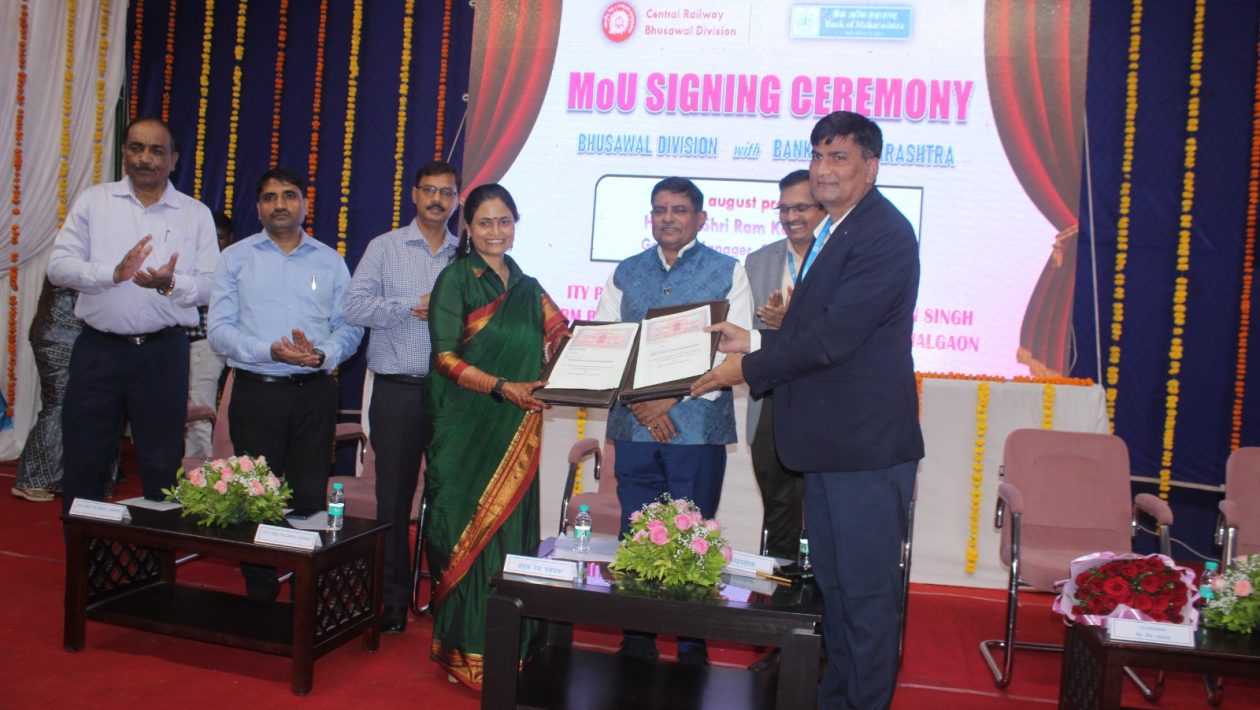 भुसावळ – विभागाने आज दिनांक 09.08.2024 रोजी महाराष्ट्र बँकेसोबत रेल्वे कर्मचाऱ्यांसाठी वेतन खात्यासाठी सामंजस्य करारावर (MoU) स्वाक्षरी केली आहे. हा विभागाने केलेला अत्यंत प्रशंसनीय उपक्रम आहे. या करारात रेल्वे कर्मचाऱ्यांच्या आणि त्यांच्या कुटुंबियांच्या कल्याणकारी योजनांचा विशेषतः विचार करण्यात आला आहे.