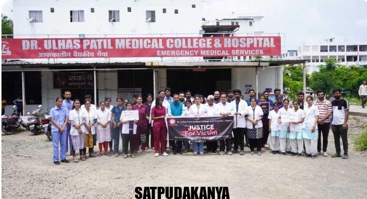 डॉ उल्हास पाटील वैद्यकीय महाविद्यालय व रुग्णालयातील आपातकालीन विभागासमोर वुई वॉण्ट जस्टीस असे फलक घेऊन डॉक्टर्स उभे होते. याप्रसंगी डॉ.उल्हास पाटील वैद्यकीय महाविद्यालयाचे अधिष्ठाता डॉ.प्रशांत सोळंके, वैद्यकीय अधिक्षक डॉ.प्रेमचंद पंडित, डॉ.सुभाष बडगुजर, फिजीशियन डॉ.सी.डी.सारंग, महाविद्यालयाचे रजिस्ट्रार प्रमोद भिरुड यांच्यासह निवासी डॉक्टर येथे उपस्थीत होते. दंडावर काळी फीत बांधून तीव्र शब्दात निषधे व्यक्त करण्यात आला. याप्रसंगी काही नवतरुण डॉक्टरांनी देखील या घटनेबद्दल तीव्र नाराजी व्यक्त करत घटनेच्या तपासावर प्रश्नचिन्ह उपस्थीत केले. इंडियन मेडिकल असोसिएशनने केलेल्या आवाहनाला डॉ.उल्हास पाटील रुग्णालयाने पाठिंबा दिला असून केवळ इमरजन्सी सेवा येथे रुग्णांना देण्यात आली.
