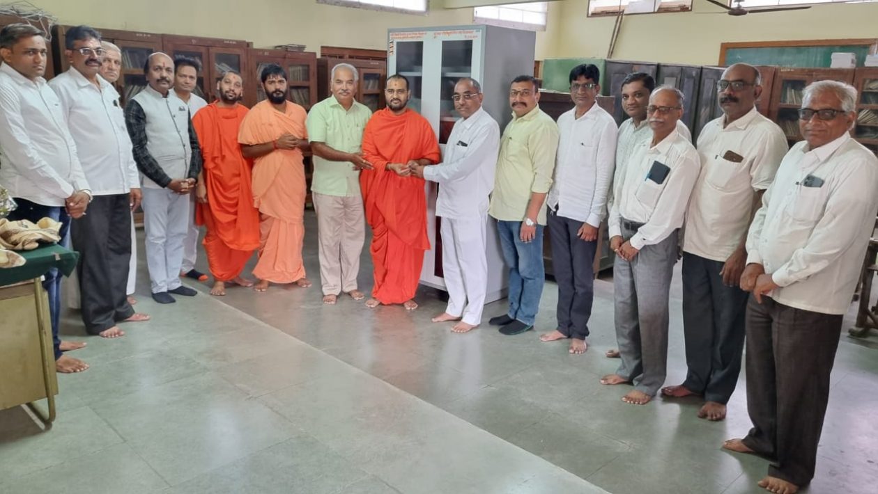 शरद महाजन यांच्याकडे कपाटाची चावी देताना शास्त्री श्री भक्ती स्वरूप दास जी सोबत शास्त्री धर्मनंदनदासजी, शास्त्री स्वयंप्रकाशदासज, ललित कुमार फिरके व पदाधिकारी