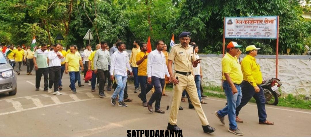 भुसावळ – सेंट्रल रेल्वे मजदूर संघातर्फे रेल्वे कर्मचाऱ्यांच्या विविध समस्या बाबत सीआरएमएसचे अध्यक्ष डॉ. प्रवीण बाजपई यांच्या आदेशानुसार भुसावळ रेल्वे , स्टेशन पासून 22 रोजी भुसावळ मंडळ रेल प्रबंधक कार्यालयावर मोर्चा काढण्यात आला .रेल्वे कर्मचाऱ्यांच्या ज्वलंत समस्या तथा , कर्मचाऱ्यांचे शोषण व अधिकारीच्या मनमानी विरुद्ध हा मोर्चा चे आयोजन करण्यात आले होते या मोर्चाचे नेतृत्व वी. के. समाधिया यांनी केले.