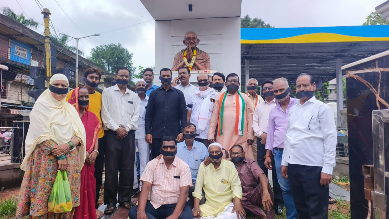 भुसावळ – बदलापूर येथे चिमुरड्यांवर केलेल्या अत्याचार घटनेच्या निषेधार्थ भुसावळ शहर कॉग्रेस कमेटी शिवसेना महा विकास आघाड़ी तर्फे महात्मा गांधी पुतळ्या जवळ सुमारे एक तास मौन आंदोलन करण्यात आले .