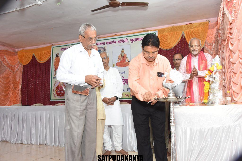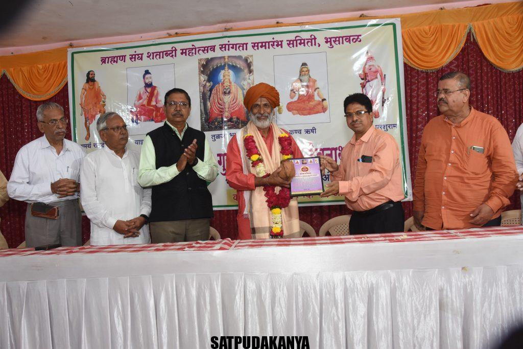 भुसावळ – येथील ब्राह्मण संघाच्या शताब्दी महोत्सवानिमित्त लघुरुद्र पुजा तसेच समाजबांधवांचा सत्कार सभारंभ सपन्न झाला यानिमित्त आज दिनांक २५ ऑगस्ट रविवार रोजी मुक्ताईनगर अंतुर्ली येथील गुरुवर्य प . पू श्री देवनाथ महाराज यांची प्रमुख उपस्थिती लाभली .