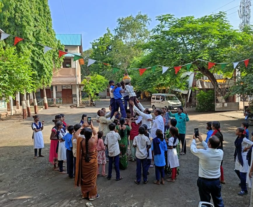 भुसावळ – नगरपरिषद संचलित म्युनिसिपल हायस्कूल भुसावळ येथे आला रे गोविंदा च्या तालावर नाचत कुदत फूगड्या खेळत दहीहंडीचा कार्यक्रम मोठ्या उत्साहात साजरा झाला. विद्यार्थी विद्यार्थिनींनी अनोख्या पद्धतीने दहीहंडीचा आनंद घेतला. मानवी मनोरे करून व प्रत्येक विद्यार्थ्यांच्या डोळ्यावर पट्टी बांधून उंचावर टांगलेली दहीहंडी फोडण्याची संधी देण्यात आली होती .यात शेवटी शाळेतील विद्यार्थी सिद्धु चित्तोडीया याने अचूकपणे दहीहंडी फोडली. तो म्युनिसिपल हायस्कूल चा गोविंदा ठरला त्याचे अभिनंदन करण्यात आले. दहीहंडीचा कार्यक्रमाचा आनंद घेण्यासाठी शाळेतील इयत्ता पाचवी ते दहावीच्या सर्व विद्यार्थ् विद्यार्थी विद्यार्थिनी व सर्व शिक्षक शिक्षकेतर कर्मचारी सहभागी होते. तदनंतर मुख्याध्यापक एस. जी. मेढे, डॉ प्रदिप साखरे,जेष्ठ शिक्षिका सरला सावकारे, शालिनी बनसोडे, ज्योती शिरतुरे, रेखा सोनवणे, पुनम देवकर, शिपाई मंदा मोरे यांच्या कडून सर्व विद्यार्थ्यांना व सर्व शिक्षक शिक्षकेतर कर्मचाऱ्यांना भेट देण्यात आली, दहीहंडीत गोविंदा ठरलेल्या सिद्धू चितोडिया यास शाळेतील ग्रंथपाल अरुण नेटके यांनी २१ रुपयाचे बक्षिस दिले.सर्वांनी गोपाळकाला व भेळचा आस्वाद घेऊन आनंद लुटला यावेळी कार्यक्रम यशस्वी करण्यासाठी शाळेचे मुख्याध्यापक सुभाष मेढे , डॉ. प्रदीप साखरे, एसटी चौधरी डी. के भंगाळे., नाना पाटील,मनोज किरंगे व शिक्षकेतर कर्मचारी प्रविण चौधरी, पूनम देवकर,अरुण नेटके, लक्ष्मण पवार, मंदा मोरे, राजेंद्र बागुल आदींसह सर्व विद्यार्थ्यांनी प्रयत्न केले..